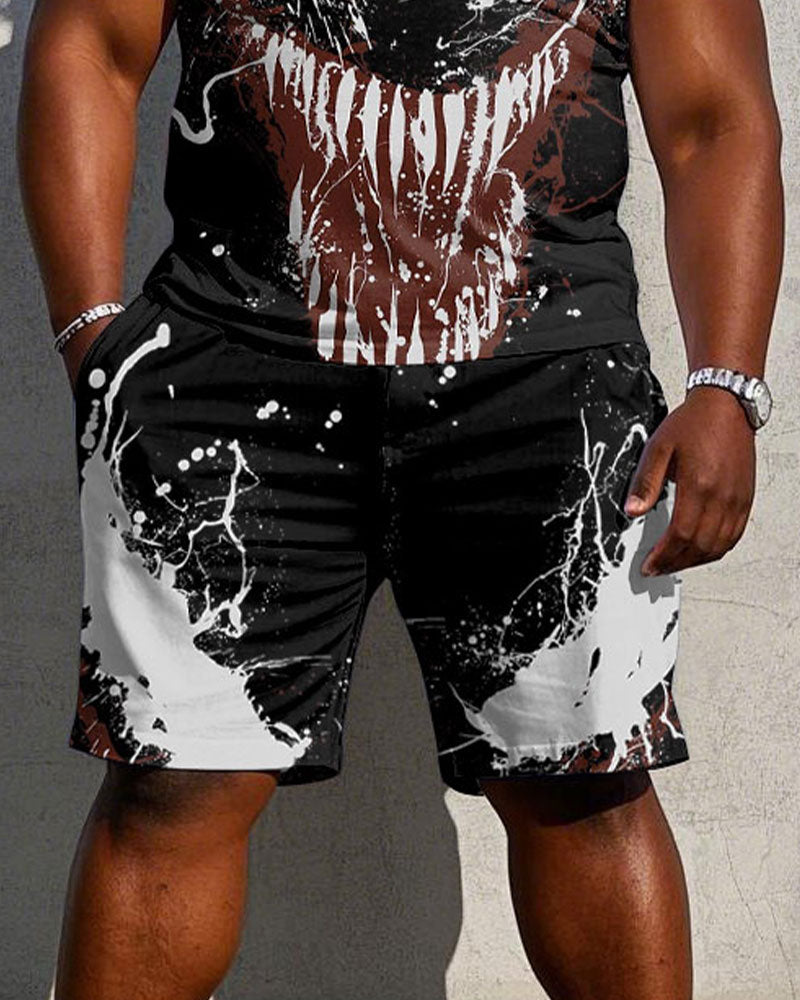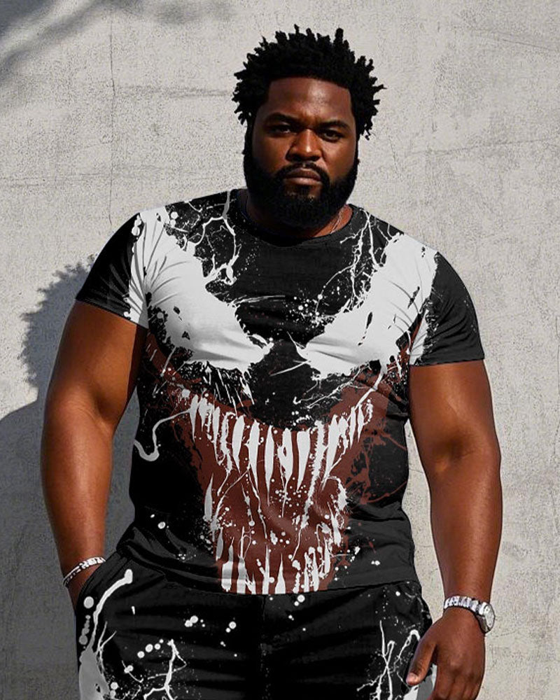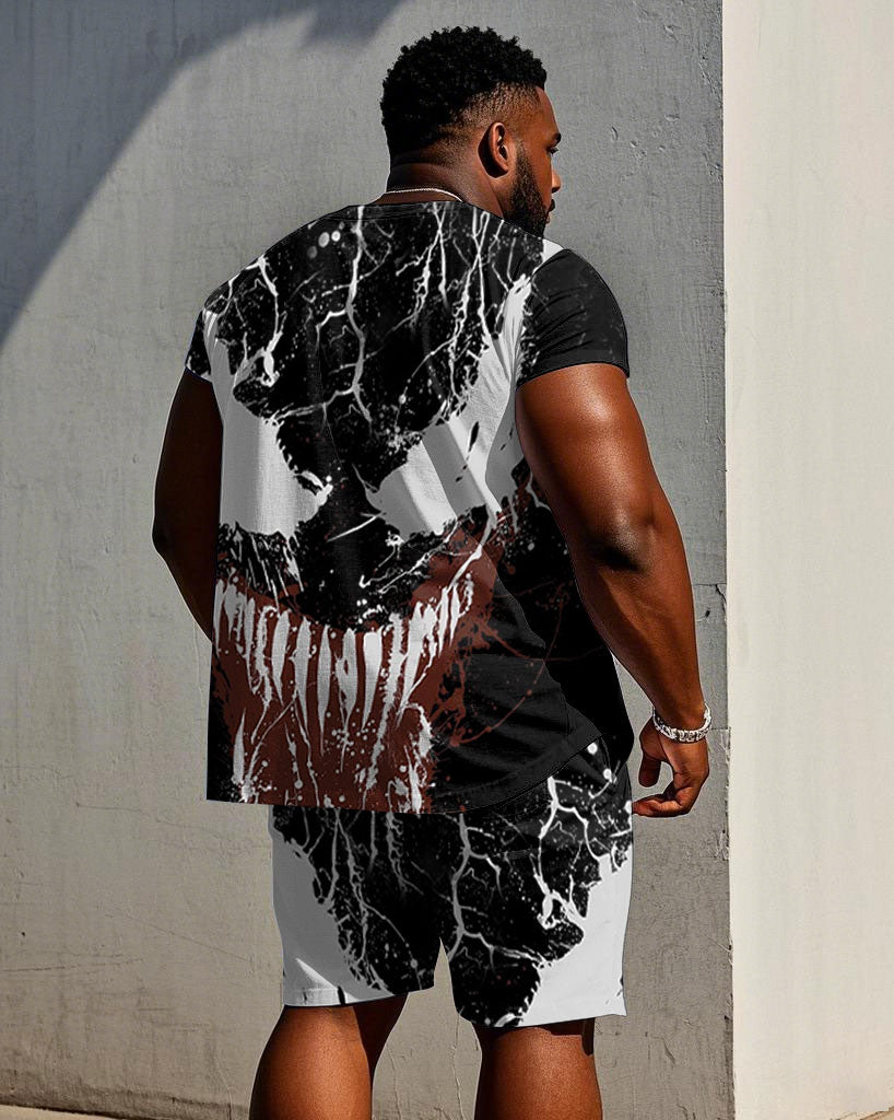Men's Plus Size Street Fashion Tear Roar Pattern Short Sleeve T-Shirt Shorts Suit