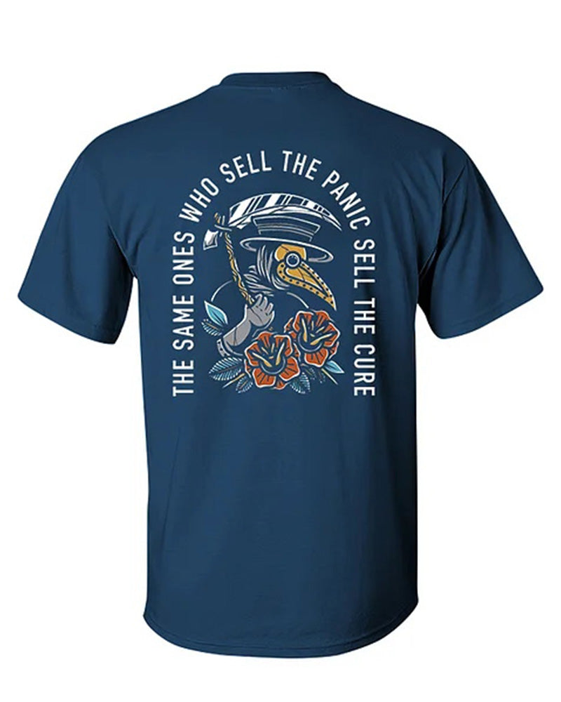 Men's Plus Size Street Fashion The Same Ones Who Sell The Panic Sell The Cure Printed Round Neck Short Sleeve T-Shirt