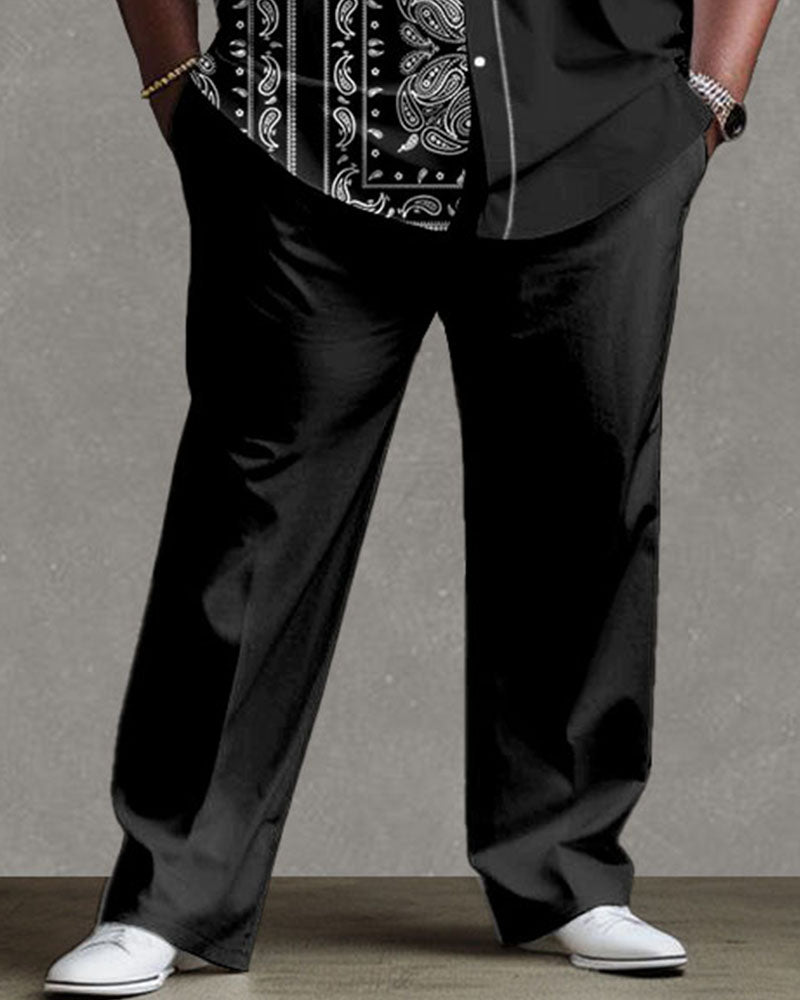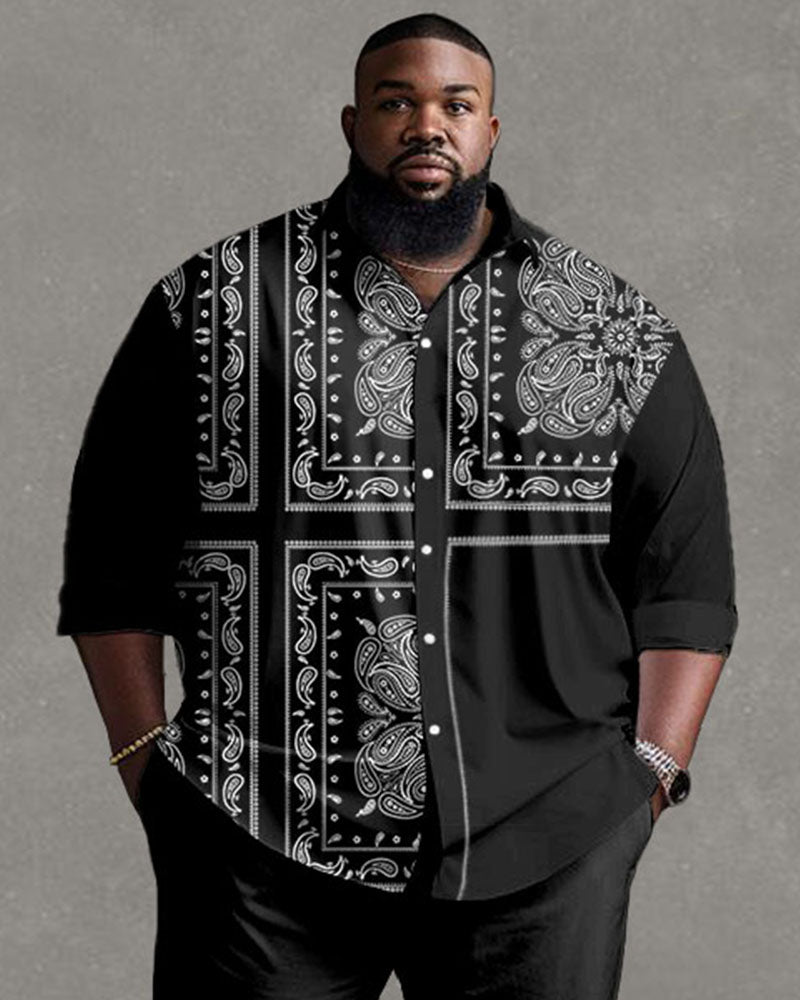 Men's Plus Size Street Fashion Vintage Stitching Pattern Long Sleeve Shirt Trousers Suit