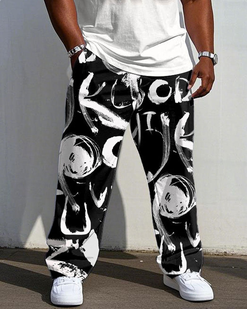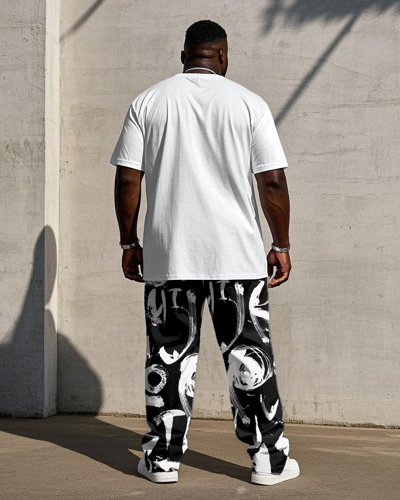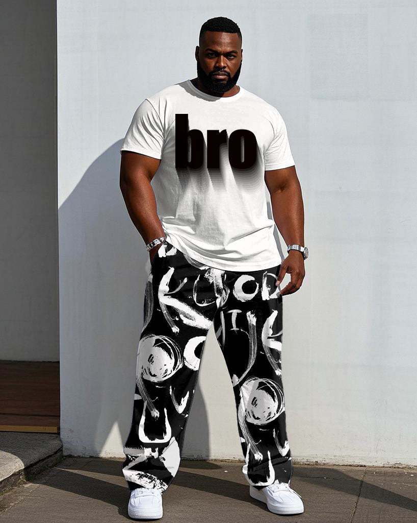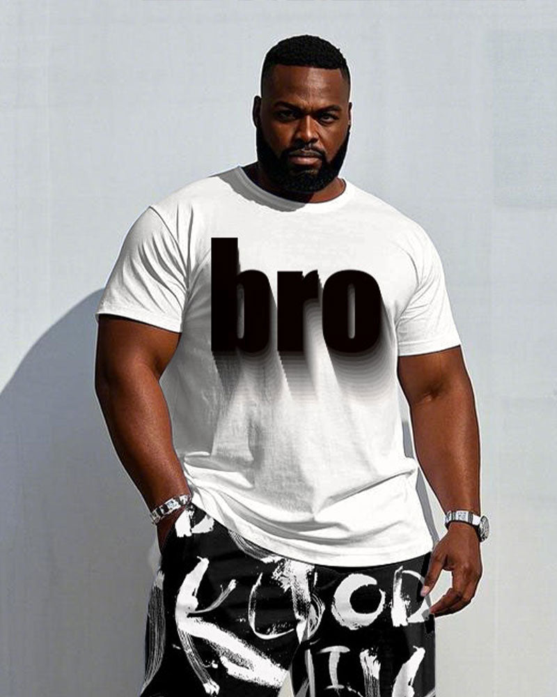 Men's Plus Size Street Graffiti "Brother" Three-dimensional Projection Print Short-sleeved T-shirt Trousers Suit