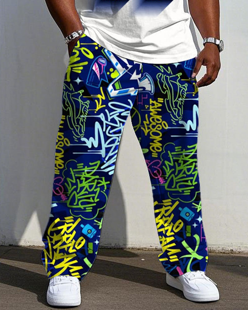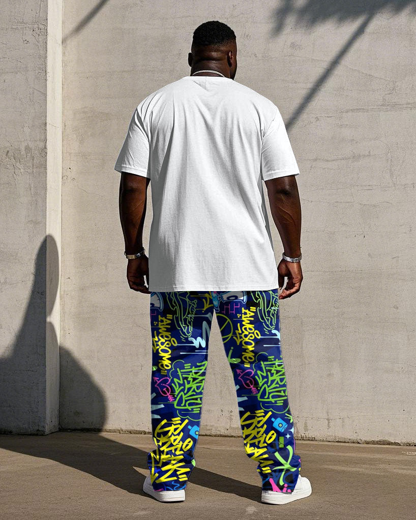 Let your hip-hop style shine with this big & tall men’s T-shirt and pants set featuring bold graffiti graphics. Simple in structure but rich in personality, it can be worn as a matching set or mixed into your daily rotation. The breathable fabric and relaxed cut keep things cool, ideal for expressive summer days.