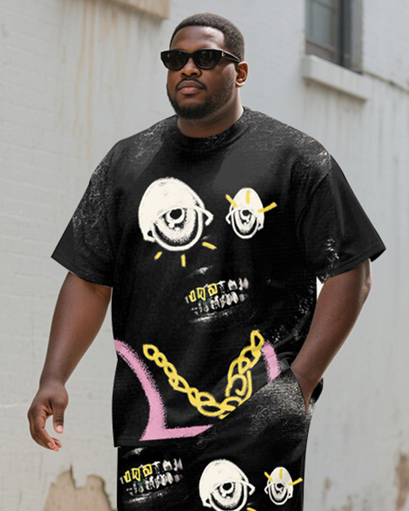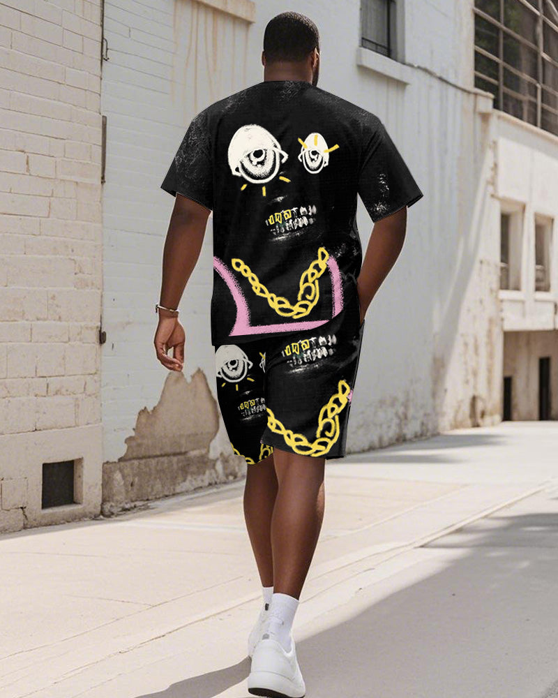 Men's Plus Size Street Graffiti Fun Expression Print Round Neck Short Sleeve T-Shirt Shorts Suit