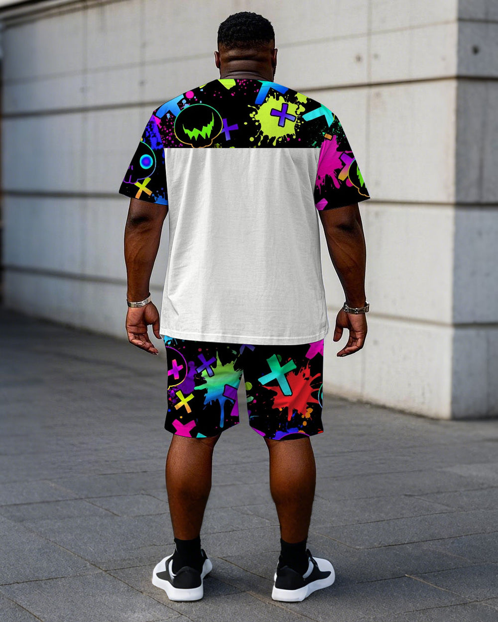 Men's Plus Size Street Graffiti King Print Short Sleeve T-Shirt Shorts Suit