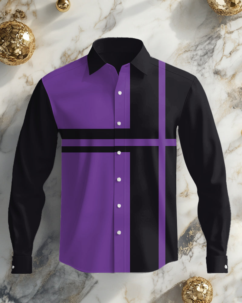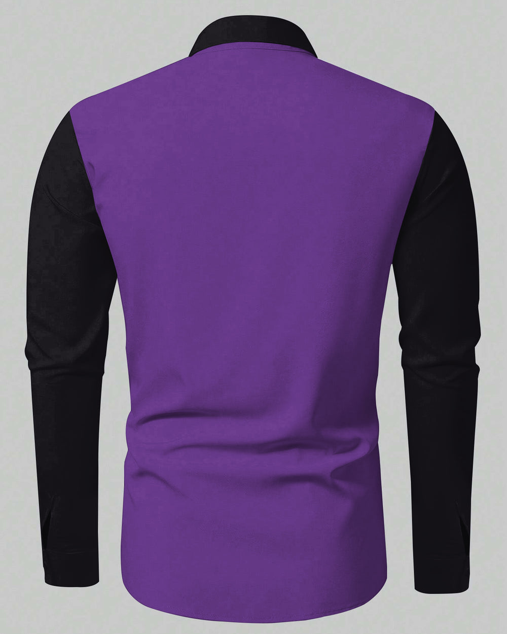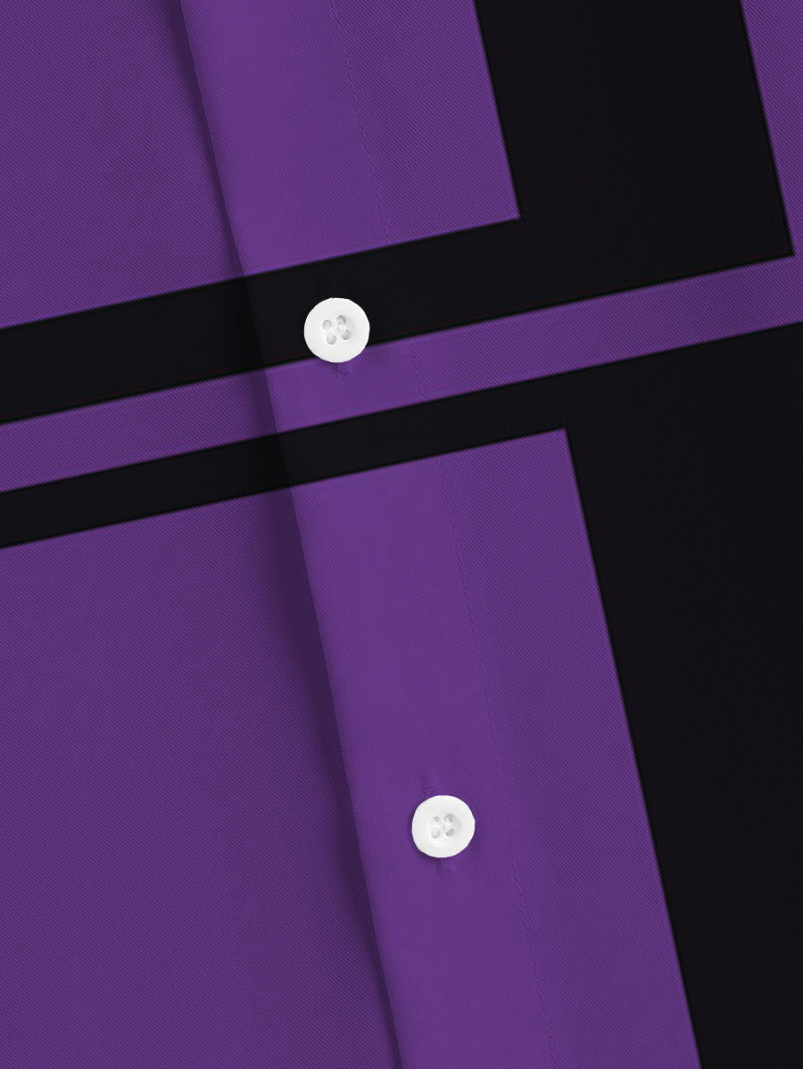 This men’s shirt showcases an elegant combination of black and purple color blocks and stripe detailing. Its understated design makes it perfect for any occasion. The versatile palette and soft fabric ensure a comfortable fit. this shirt is simplicity at its finest, designed to keep you looking polished yet relaxed.