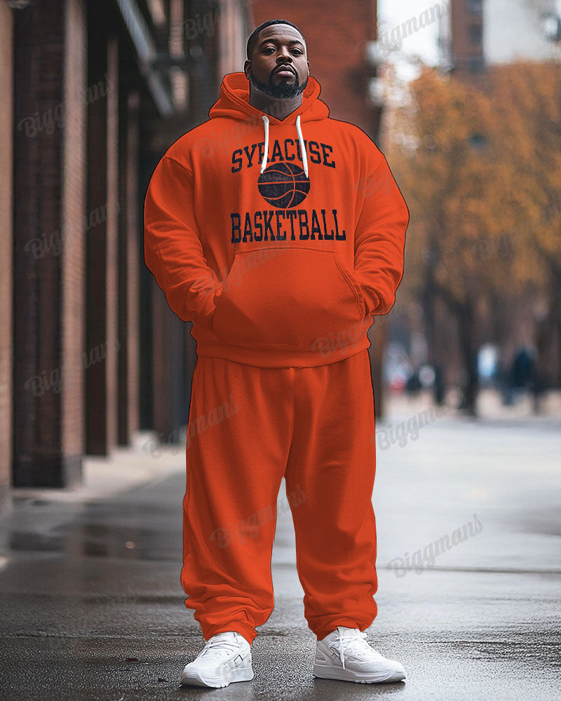 This men's plus size hoodie set is inspired by Syracuse University basketball style. The hooded design is sporty and stylish, while the relaxed plus size fit is comfortable for men of all shapes and sizes. The smart integration of varsity basketball elements, such as the iconic team logo and basketball graphic prints, shows off the energy and campus sports sentiment, making it a personalised choice for basketball enthusiasts.