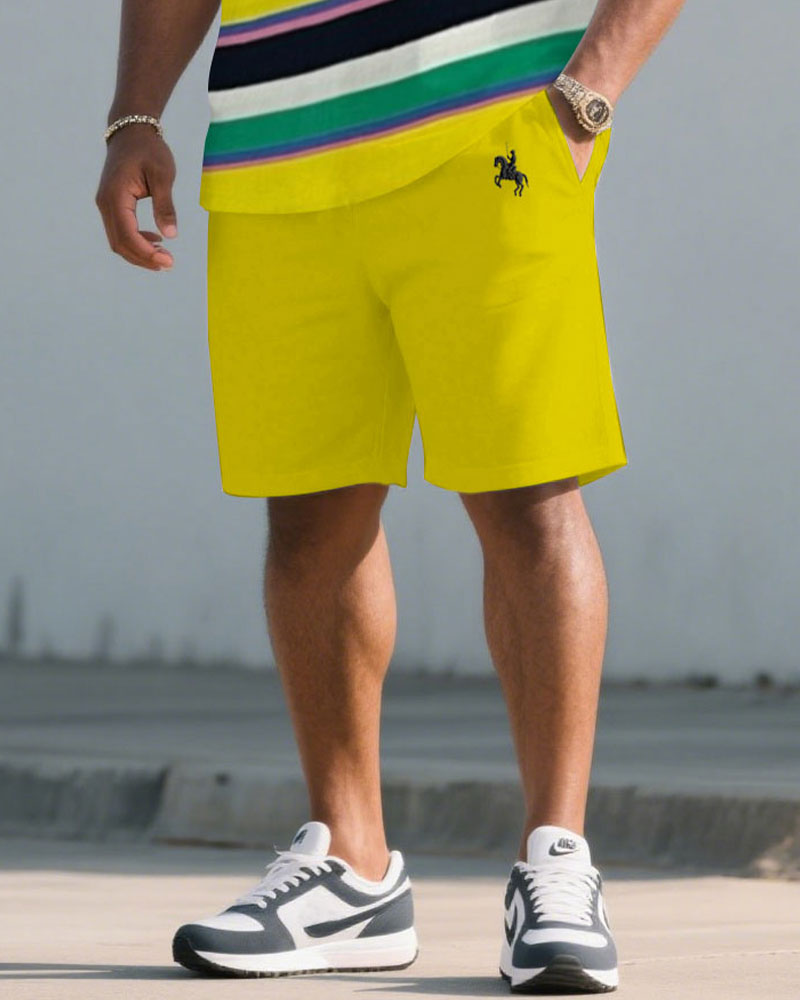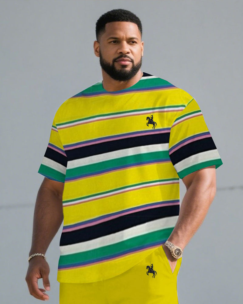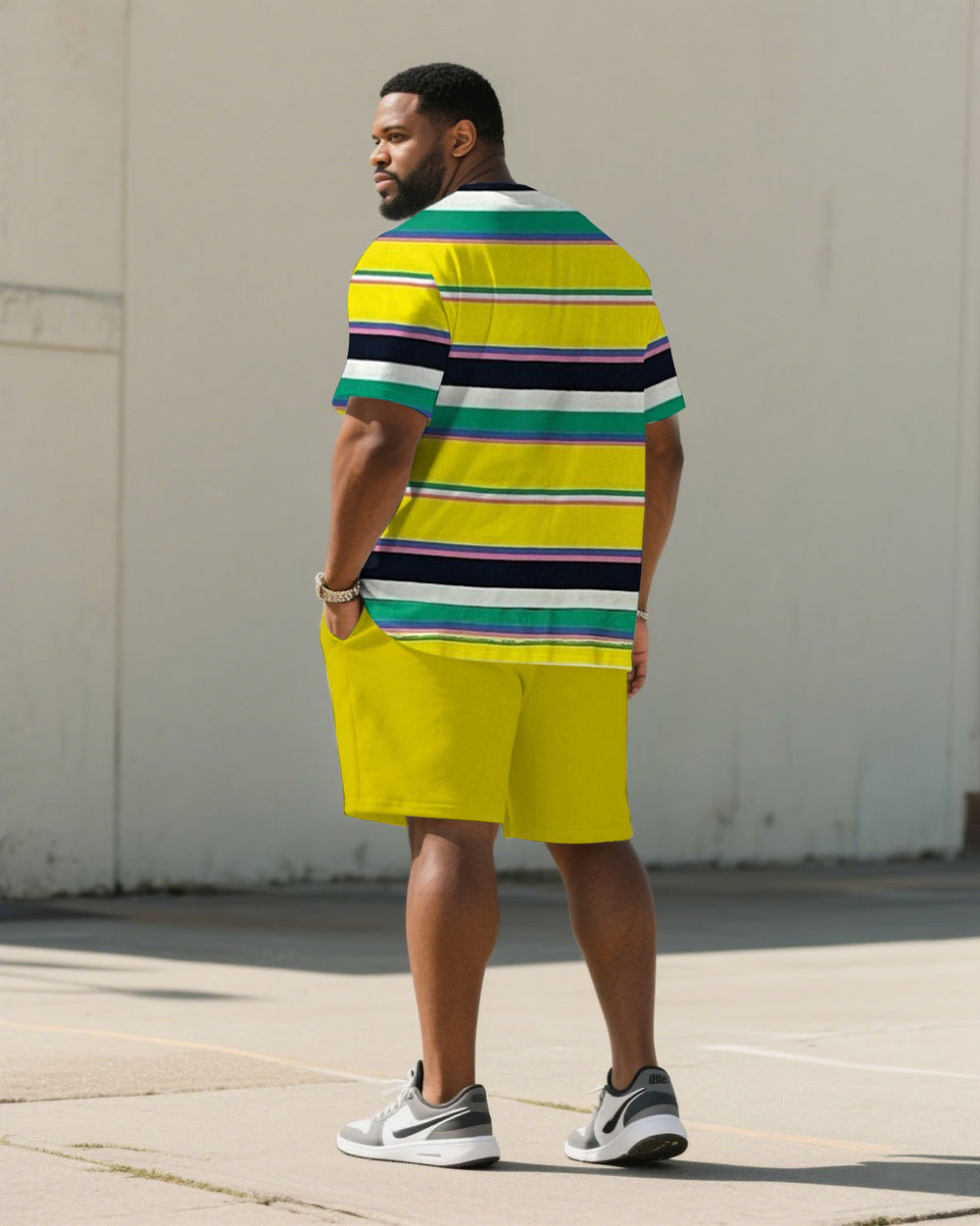 Men's Plus Size Teeth Buy Striped Fabric Chest Small Label Short Sleeve T-shirt Shorts Suit