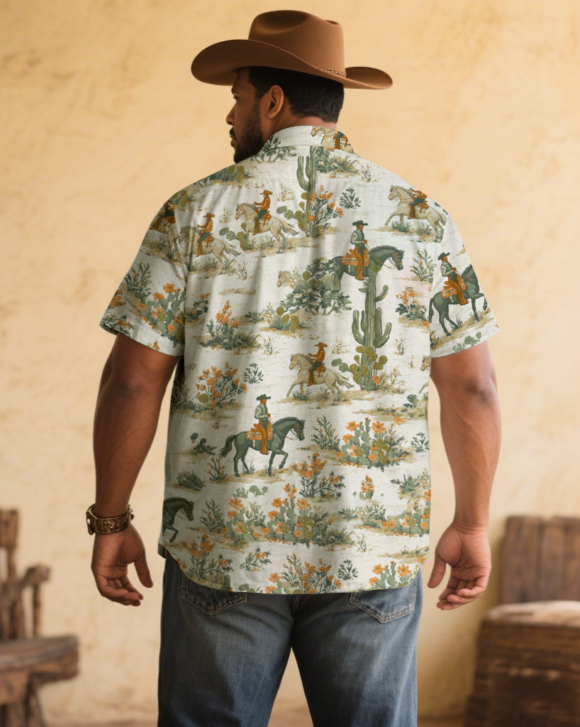 Men's Plus Size Western Denim Quartet Continuous Cotton Printed Short Sleeve Shirt