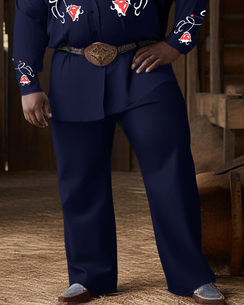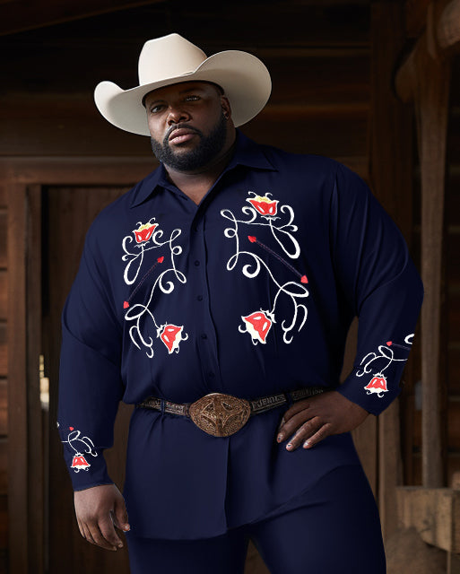 Men's Plus Size Western Denim Style Floral Long Sleeve Trousers Two-Piece Set