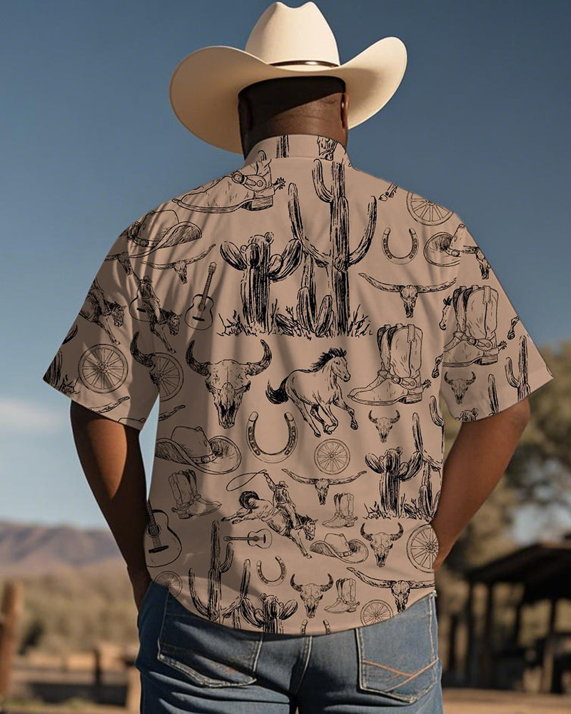 Men's Plus Size Western Style Khaki Short Sleeve Shirt