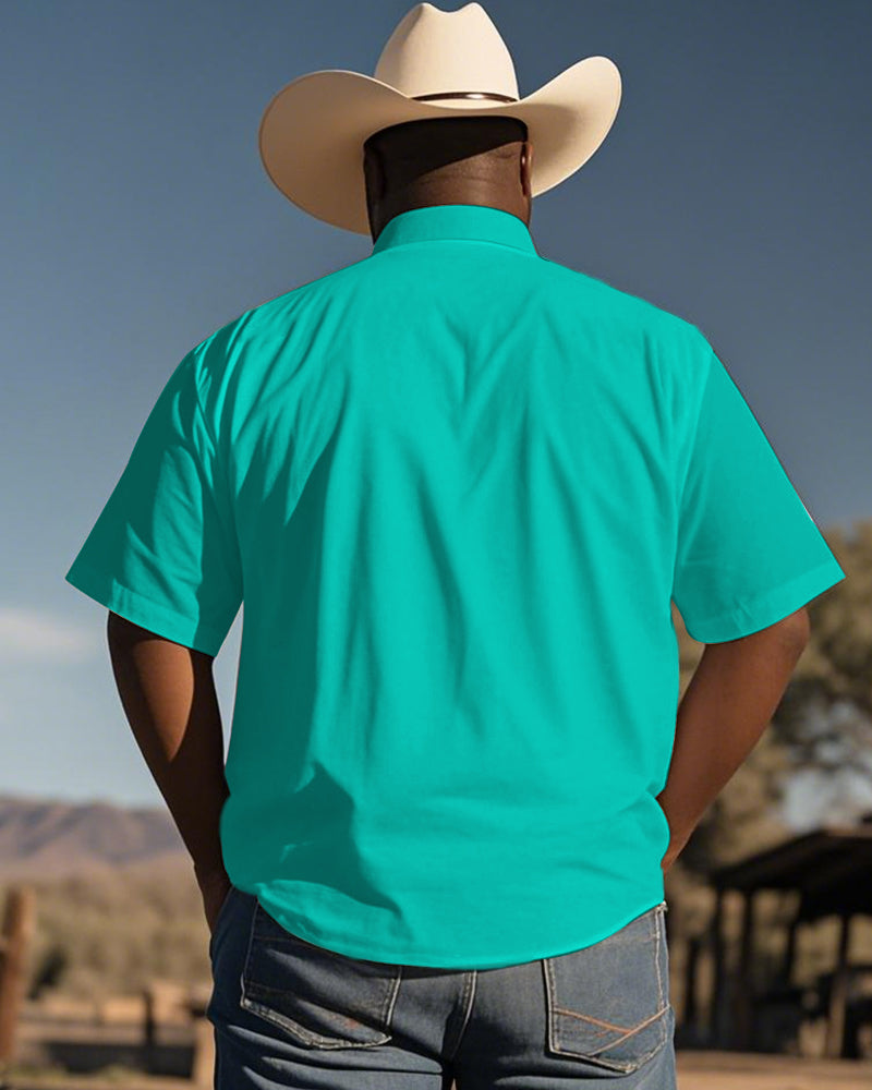 Men's Plus Size Western Style Turquoise Green Patchwork Aztec Print Short Sleeve Shirt