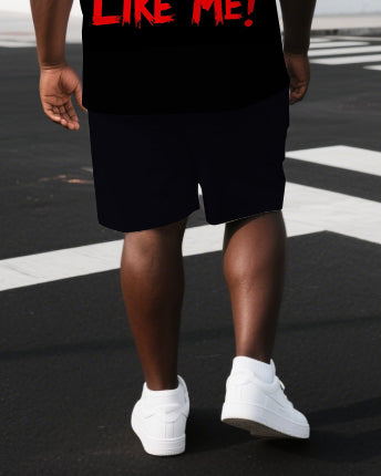 Men's Punk Fashion YOU'RE JUST A FREAK Back Lettering Print Short-Sleeve T-shirt Big & Tall Set
