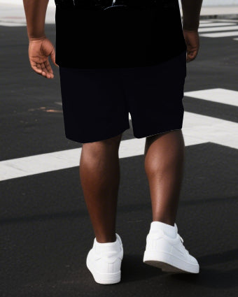 Men's Punk Style WELCOME TO MY WORLD Human Back Print Short-Sleeve T-shirt 2-Piece Big & Tall Set