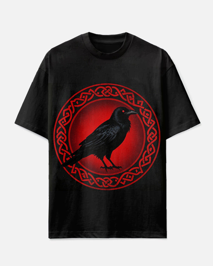 Men's Retro Fashion Round Totem Crow Printed Casual Big Size Short Sleeve T-shirt