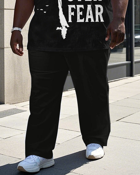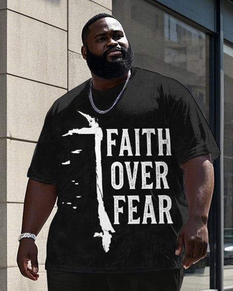 Men's Round Neck Retro FAITH OVER FEAR Printed Big & Tall Short Sleeve T-shirt Pants Set