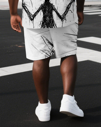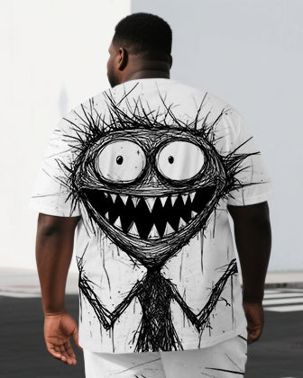 Men's Scribbled Elf Cartoon Back Print Big & Tall Summer Cool Short-Sleeve T-shirt Shorts Set