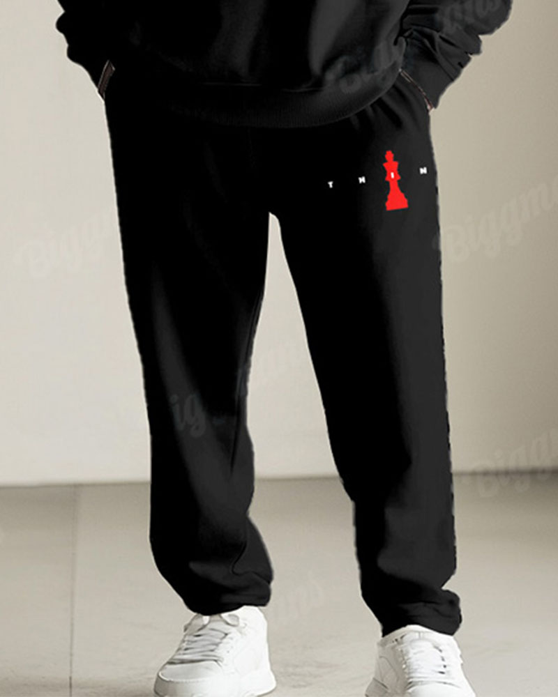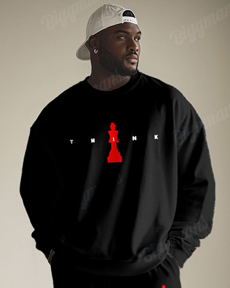 Defined by attitude, this men’s big & tall crewneck sweatsuit features a "Think" & chess print that merges style with intellectual edge. The soft stretch fabric ensures unrestricted movement, while its tailored loose fit balances comfort and silhouette, transitioning seamlessly from casual workouts to urban errands.