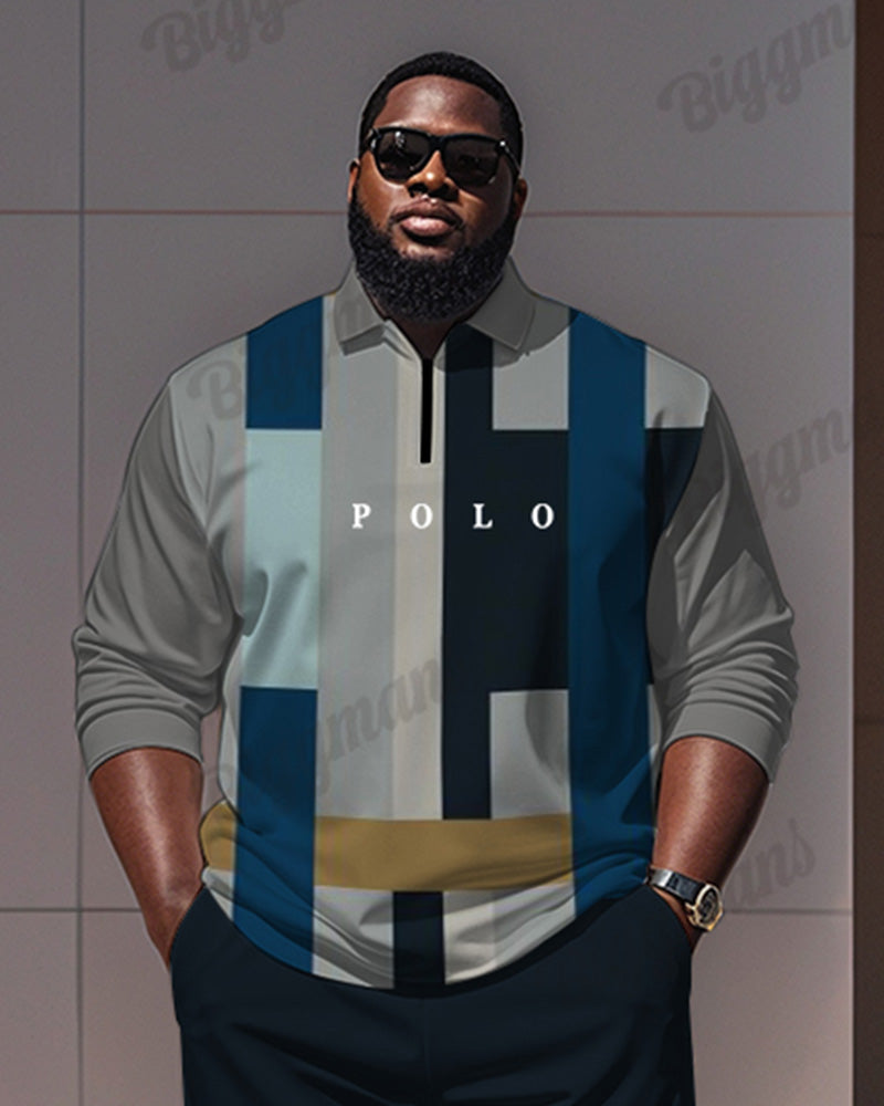 This men's suit is as crisp and clean as they come. The simple blue polo shirt features a geometric stripe print that adds a touch of style, and the zipper design is convenient and handsome. The pants in the same color have a straight fit and precise leg shape, and the overall look exudes a casual, relaxed vibe that's easy on the eyes, whether you're on a daily commute or a walk in the great outdoors.
