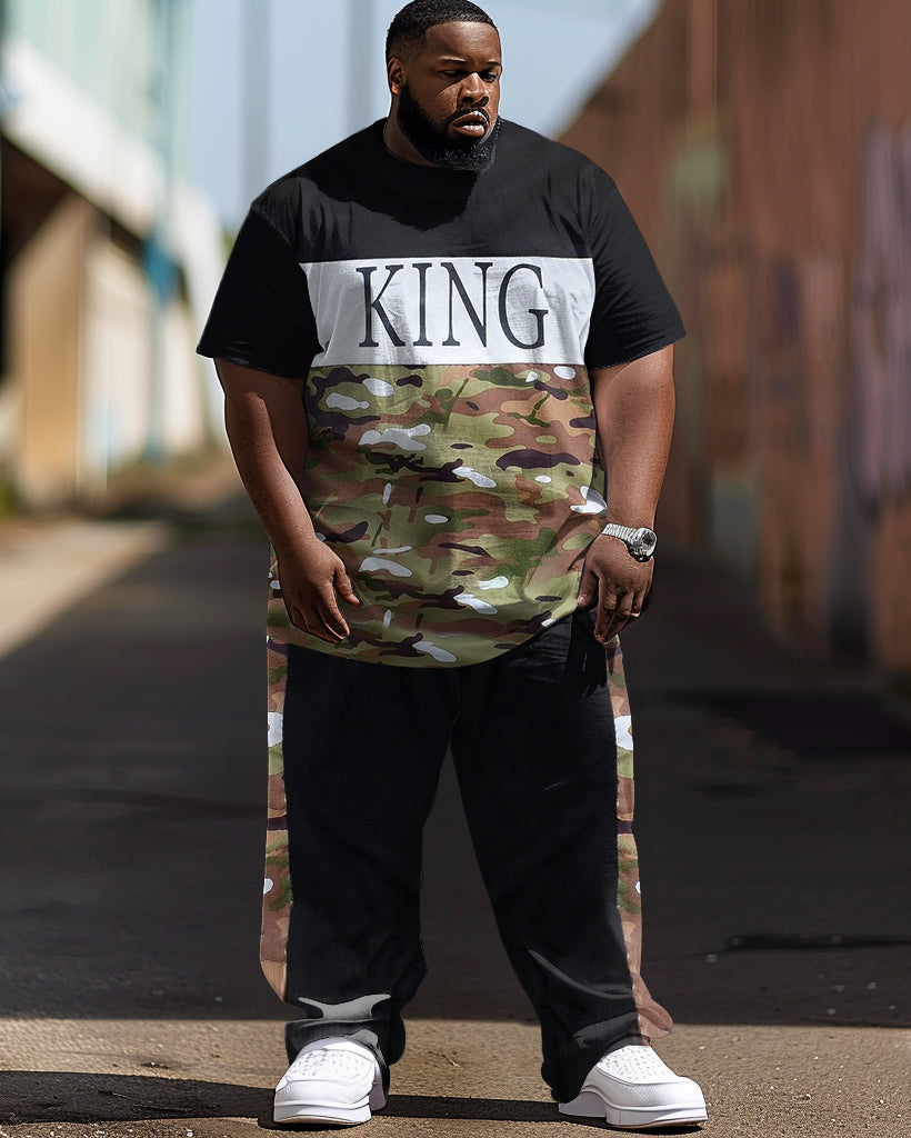 Men's Simple Camouflage Color Block Letter Print Large Suit