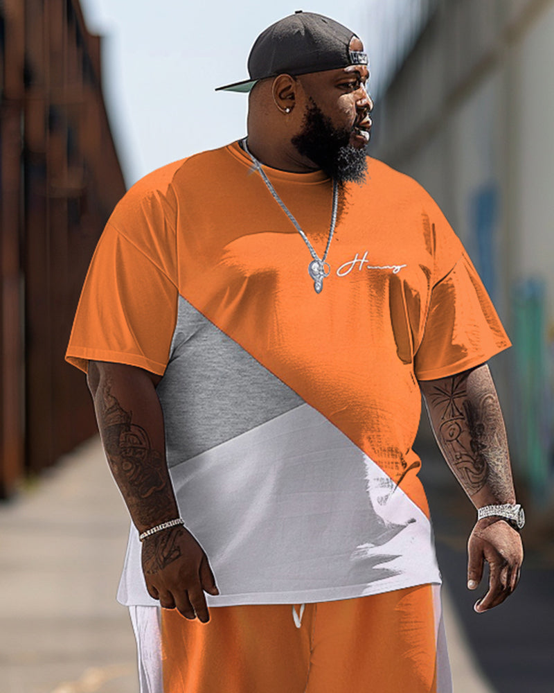 Men's Simple Colorblock Print Large Suit