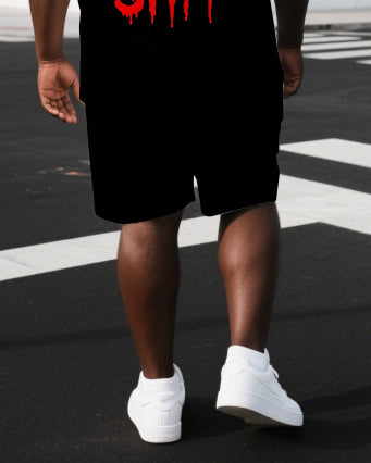 Men's Simple Punk Style People=Shit Back Lettering Big & Tall Casual Short-Sleeve T-shirt 2-Piece Set