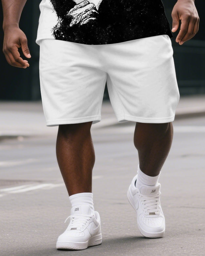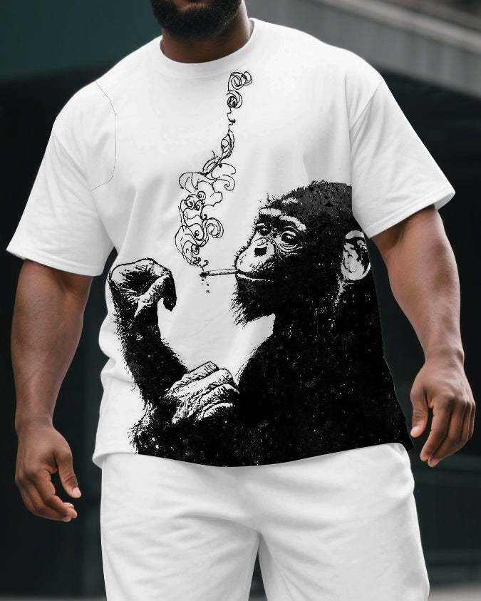 Men's Simple Sketch Gorillas Smoking Print Big & Tall Outdoor Short-Sleeve T-shirt & Short Set