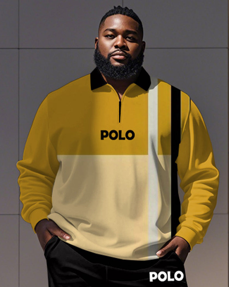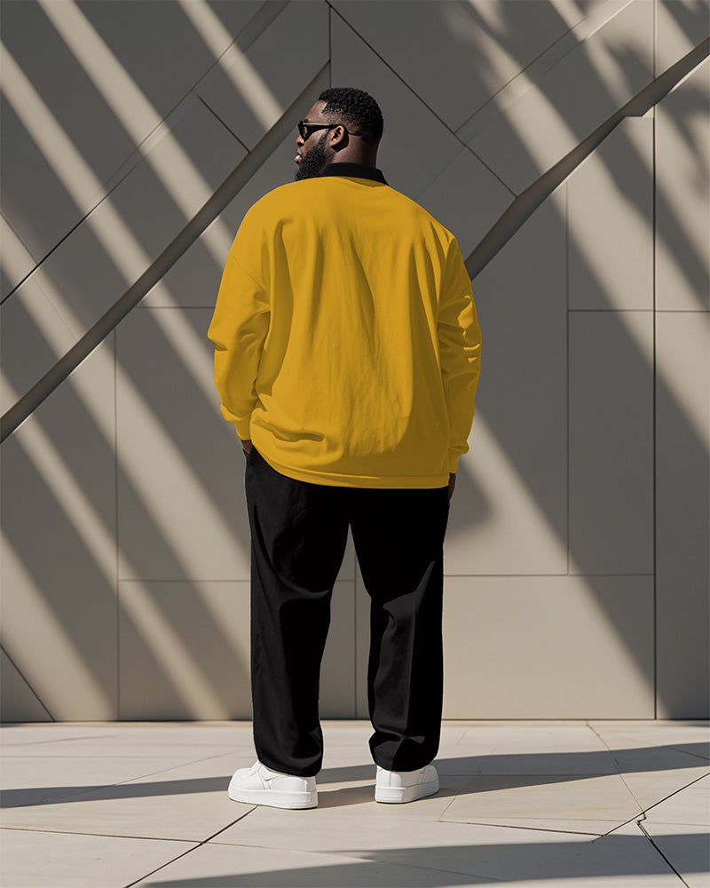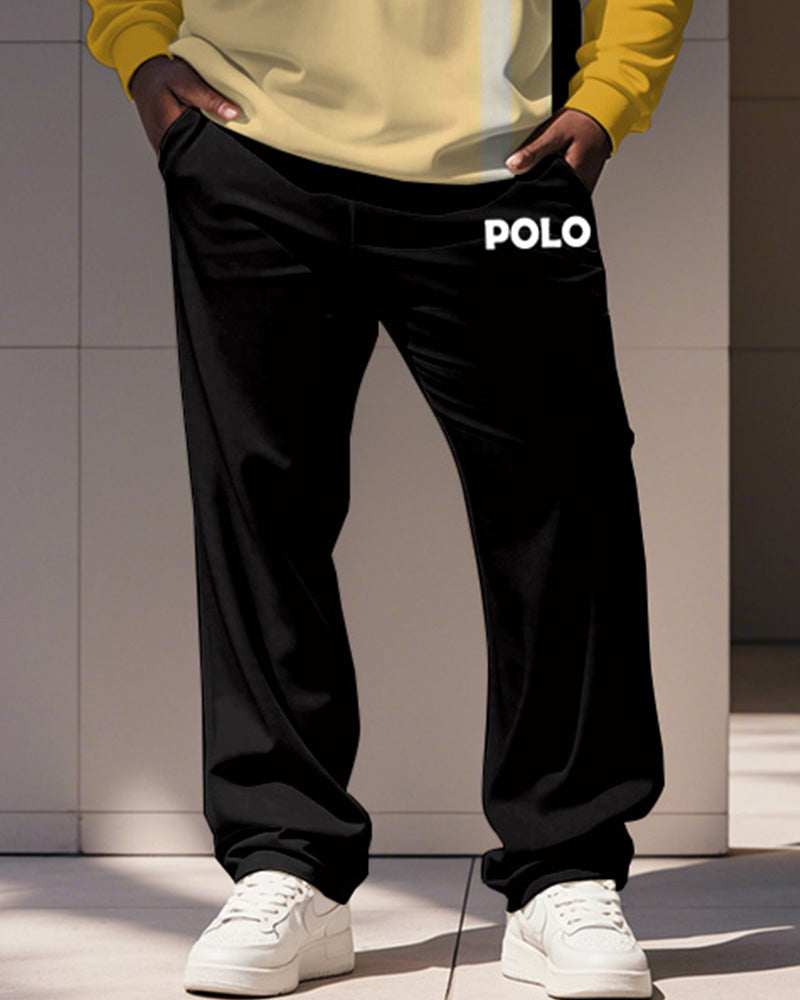 This men's suit is all about simplicity, with a bright yellow polo shirt that's full of energy, delicate stripes that are arranged in an orderly fashion to give a sense of visual hierarchy, and a monogrammed print on the chest to show off your attitude. The zip-up trousers have a slim fit and are a great match for the top, making it easy to wear for daily commuting or outdoor recreation in a chic and stylish way.