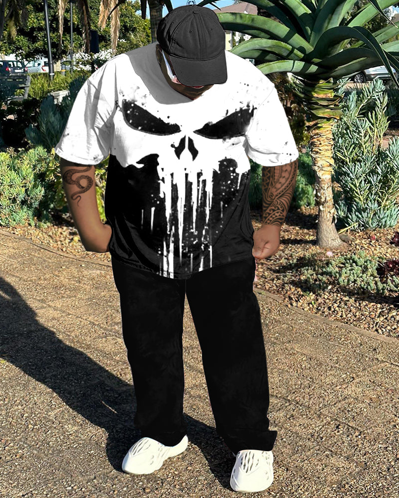 Interested in skulls? Try this set! The unique print makes your vision full of impact. The appropriate ink design makes the pattern more innovative. Its loose cut allows you to move freely. This set is very suitable for streetwear and hip-hop style, allowing you to enjoy the unique street culture in spring and summer.