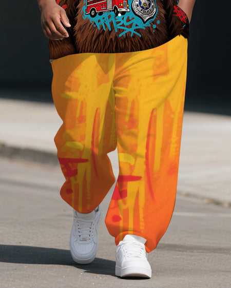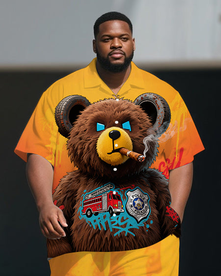 Men's Smoking Bear Gradient Fashion Casual Big Size 2-Piece Short Sleeve Shirt Pants Set