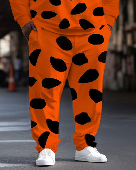 Men's Spirit Halloween Polka Dot Orange Print Plus Size Hoodie Suit