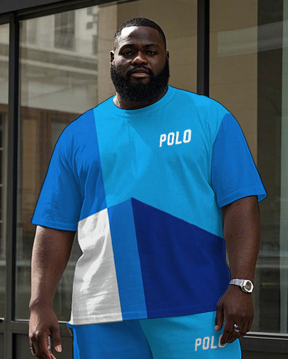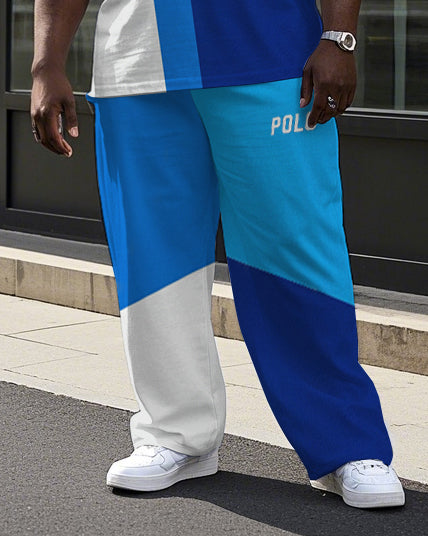 Men's Street Fashion Color Block POLO Letter Printed Big and Tall Casual Short Sleeve T-shirt Pants Set
