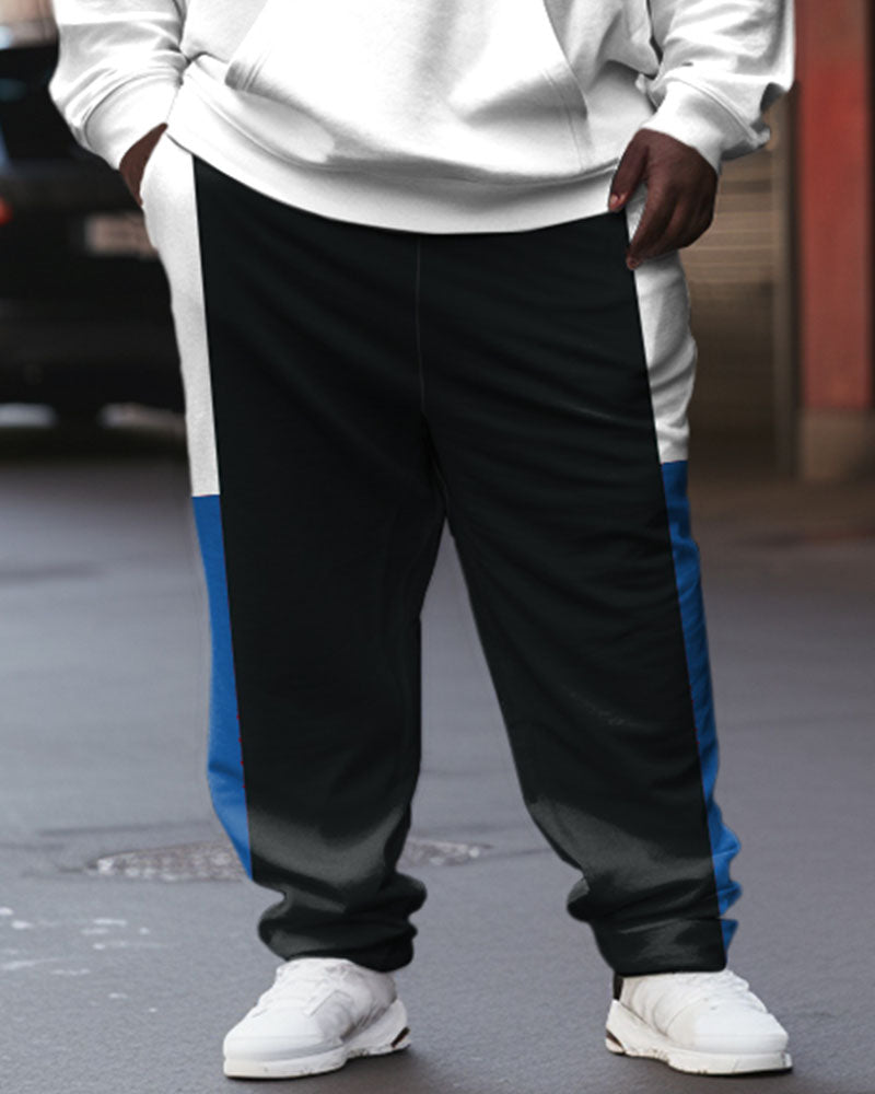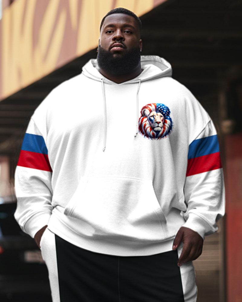 Men's Street Fashion Colorblock Lion Alphabet Print Plus Size Hoodie Suit