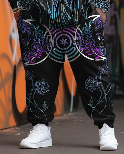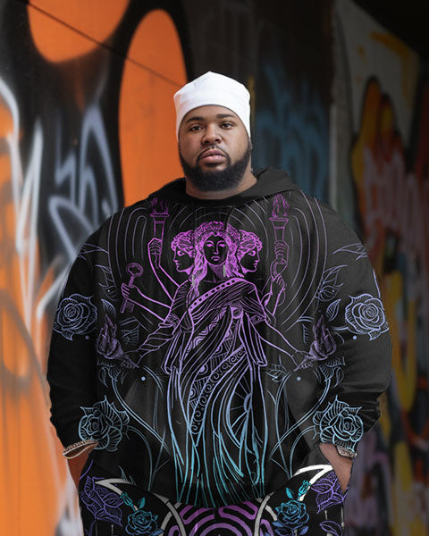 Men's Street Fashion Gradient Rune Hecate Print Plus Size Hoodie Suit
