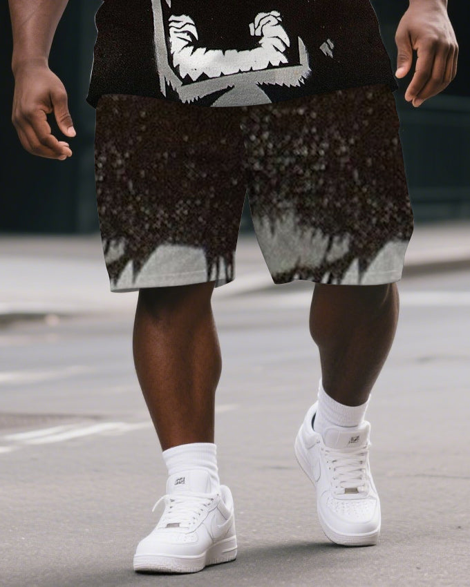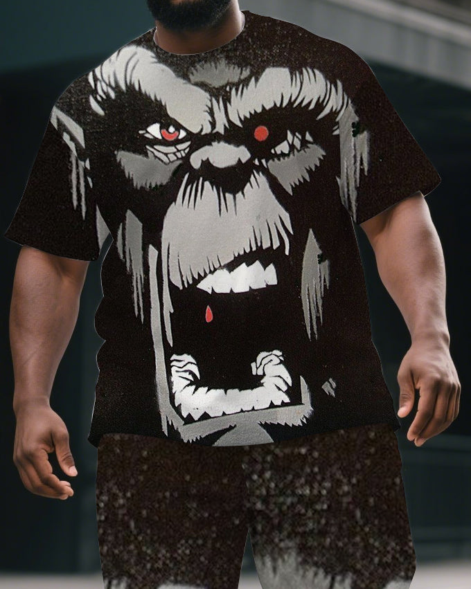 Men's Street Style Angry Gorillas Cartoon Print Big & Tall Outdoor Short-Sleeve T-shirt & Short Set