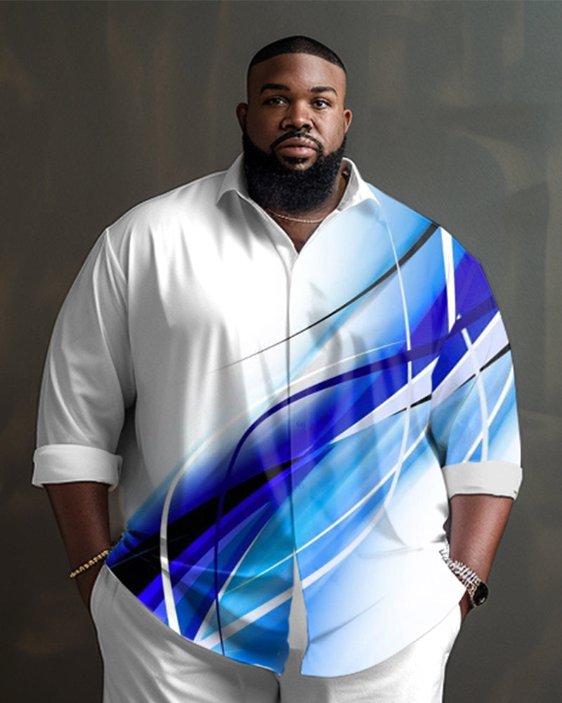 Elevate your everyday look with this big & tall men’s two-piece walking set featuring flowing blue abstract stripes. The relaxed fit, breathable fabric, and reinforced stitching deliver lasting comfort, while the elegant simplicity makes it perfect for both casual refinement and semi-formal occasions.