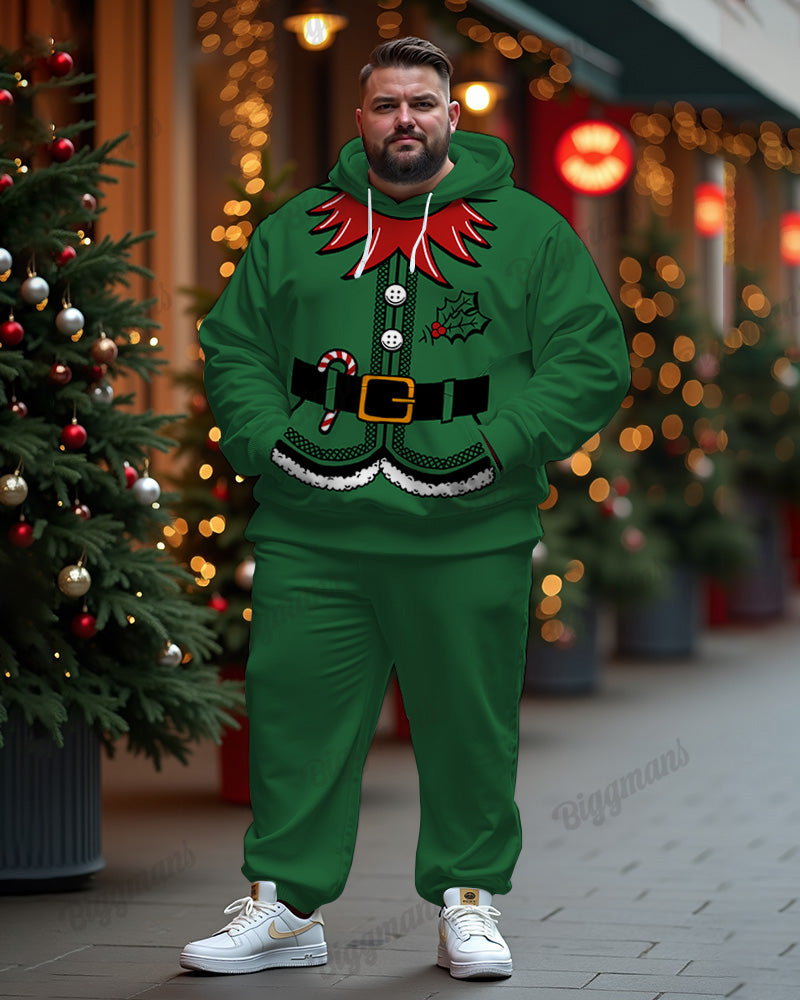 Spread holiday cheer in this big & tall men's hoodie set featuring playful elf costume prints. Designed with a relaxed fit and cozy reinforced fabric, this set keeps you comfortable while showing off your Christmas spirit. The cheerful green design and durable construction make it perfect for your casual wear.