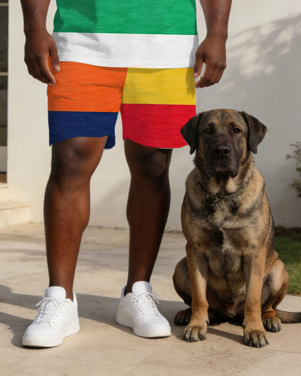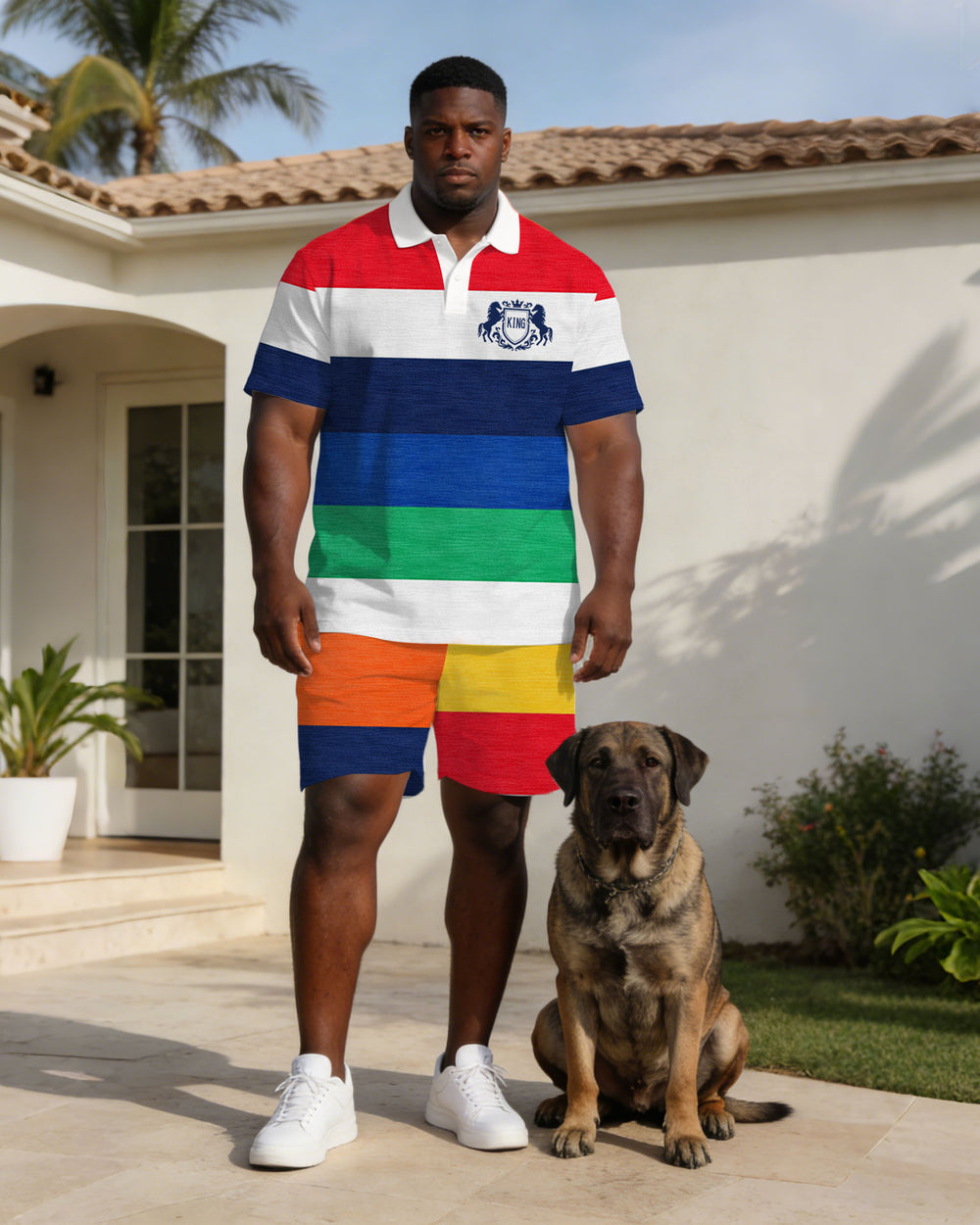 Multicolor Contrast Striped Business Casual Polo Shirt Set Large Size Men
