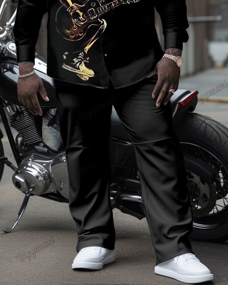 Musician Playing Guitar Long Sleeve Lap Collar Shirt 2 Piece Set Men's Plus Size