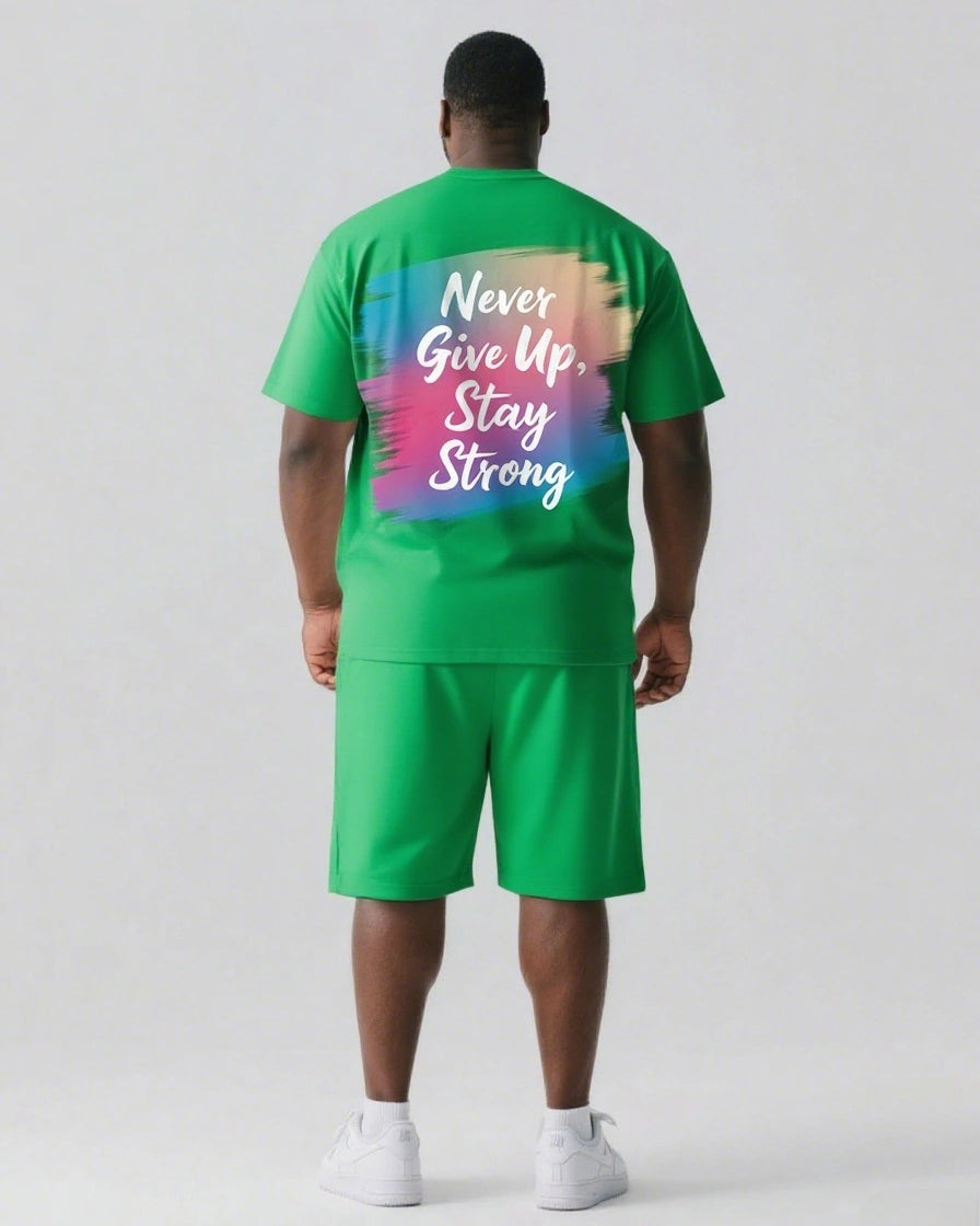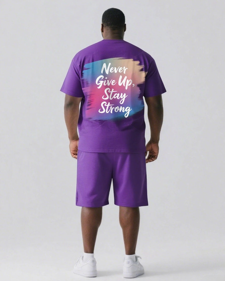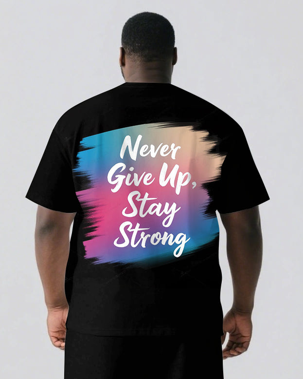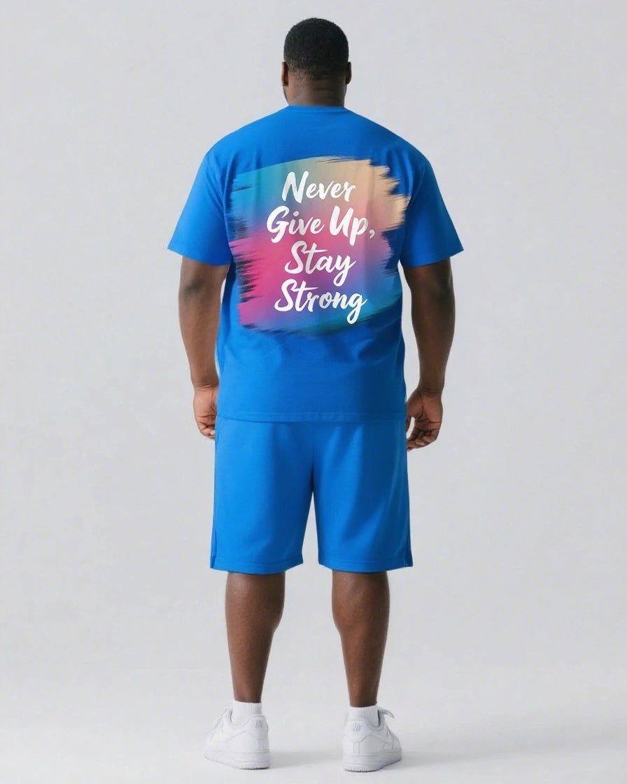 Never Give Up and Stay Strong Men's Big and Tall Simple Back Letter Short Sleeve T-shirt 2-Piece Set