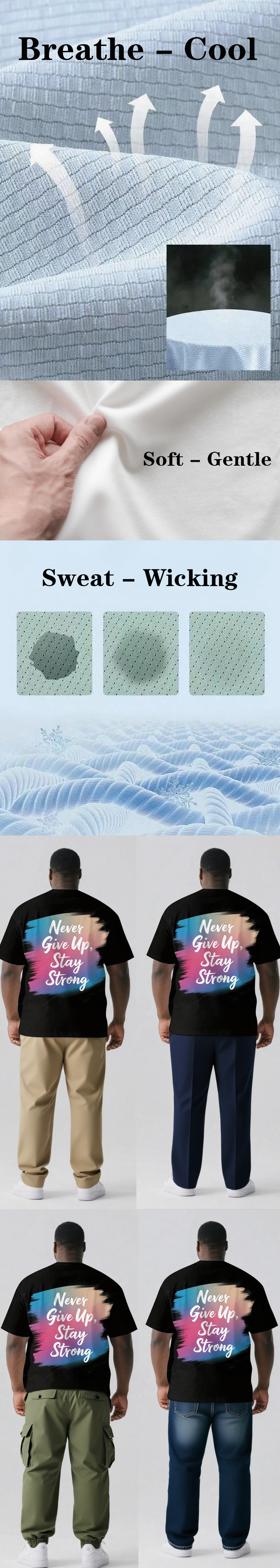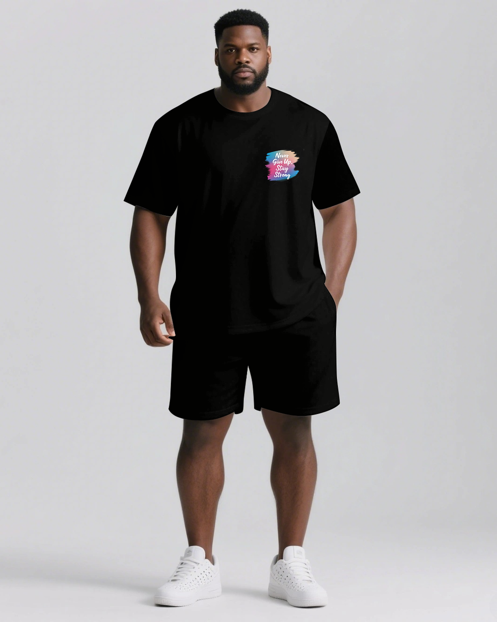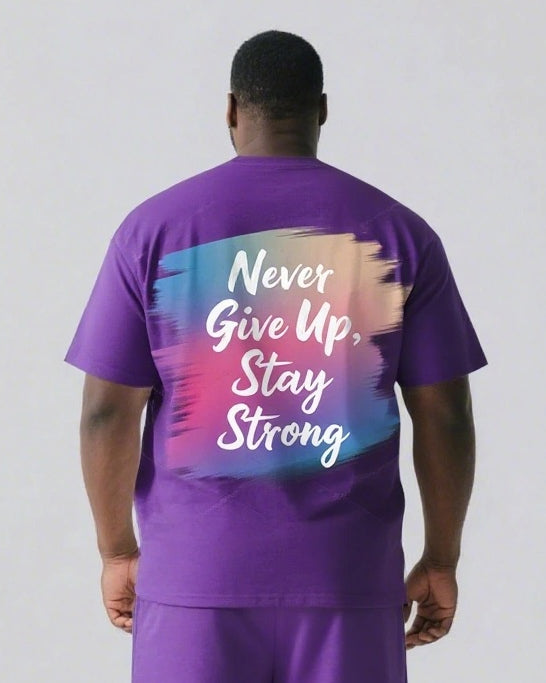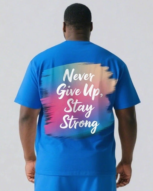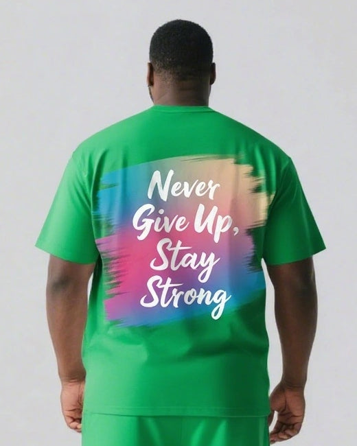 Never Give Up and Stay Strong Men's Big and Tall Simple Back Letter Short Sleeve T-shirt 2-Piece Set