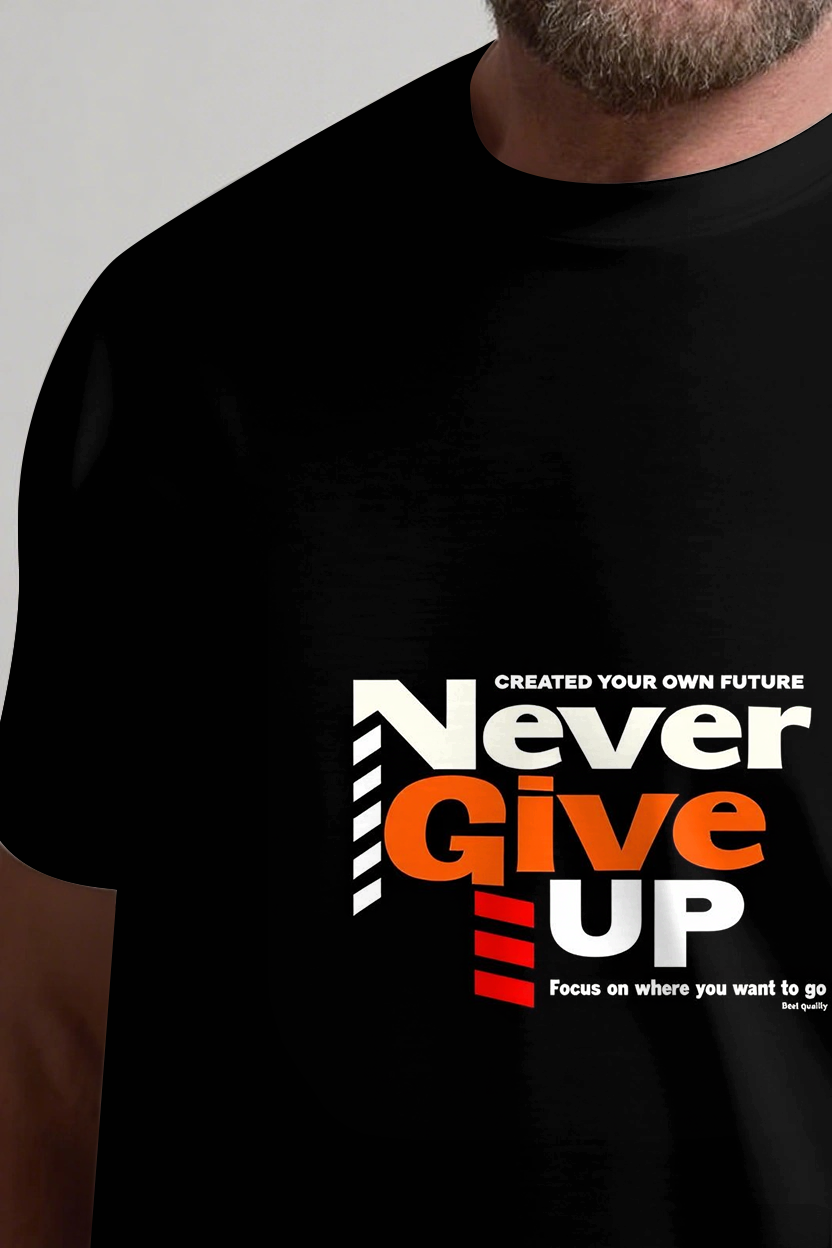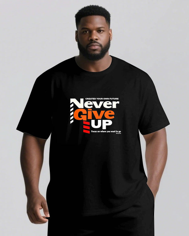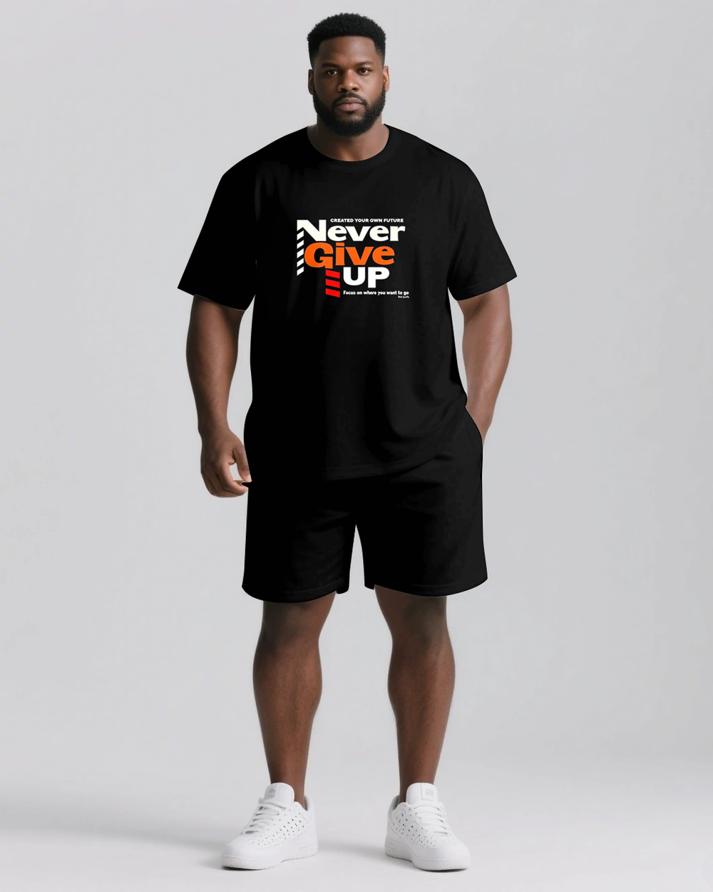 Never Give Up On Building Your Future Men's Big and Tall Lettering Short Sleeve T-shirt 2-Piece Set