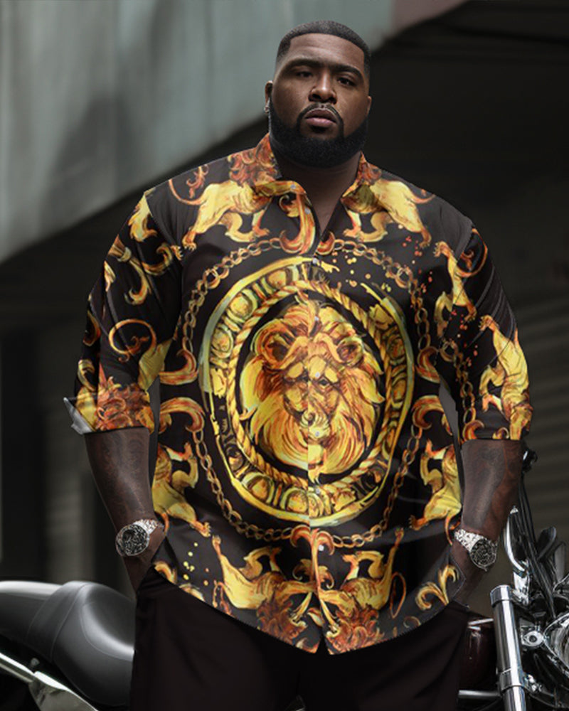 Pattern Lion Head Pattern Long Sleeve Lel Shirt 2 Piece Set Men's Plus Size