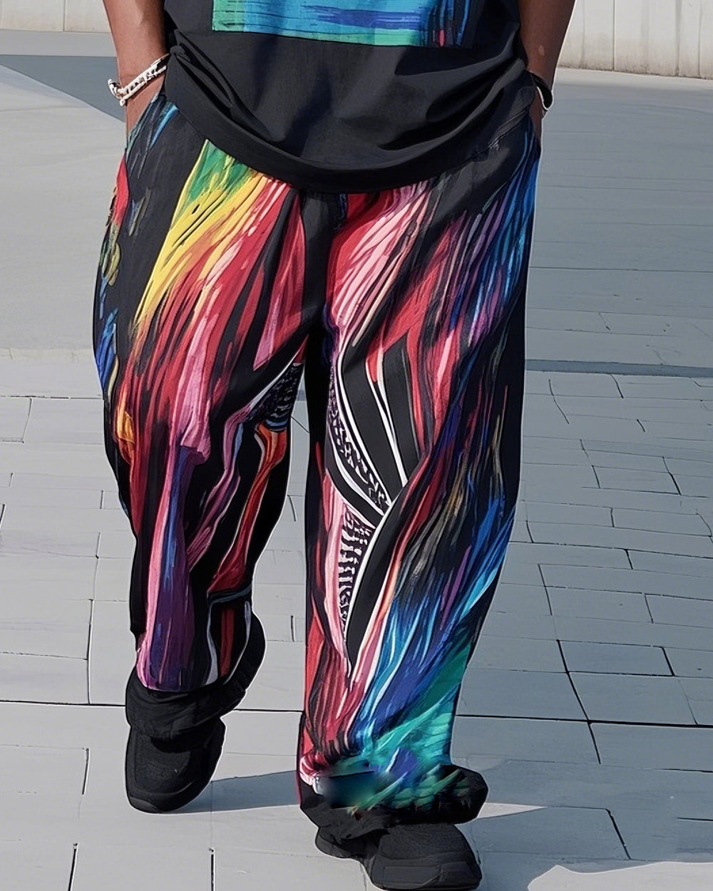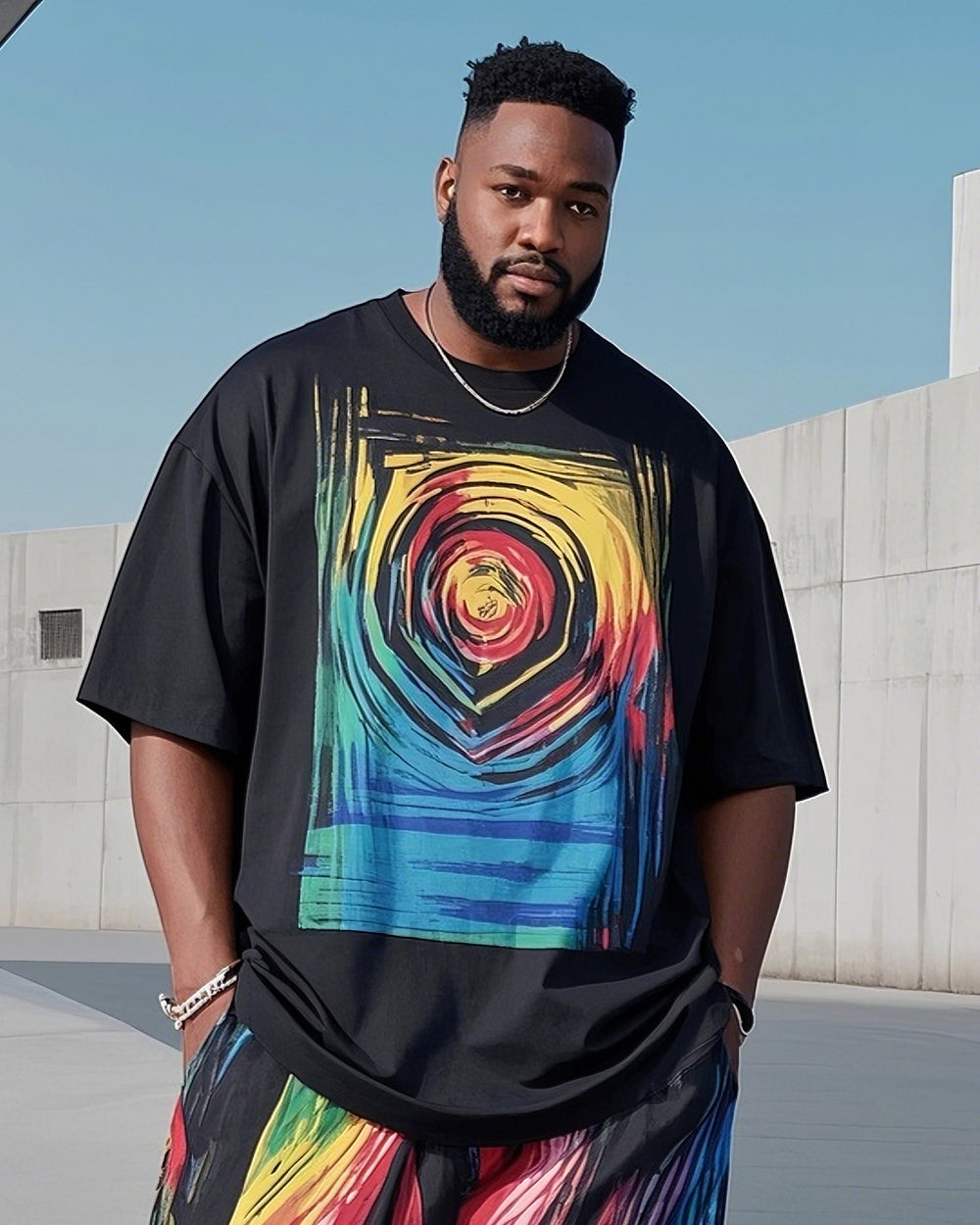 Plus Size 1 L-9L Men's Abstract Printed Casual Short Sleeve T-Shirt Pants Suit