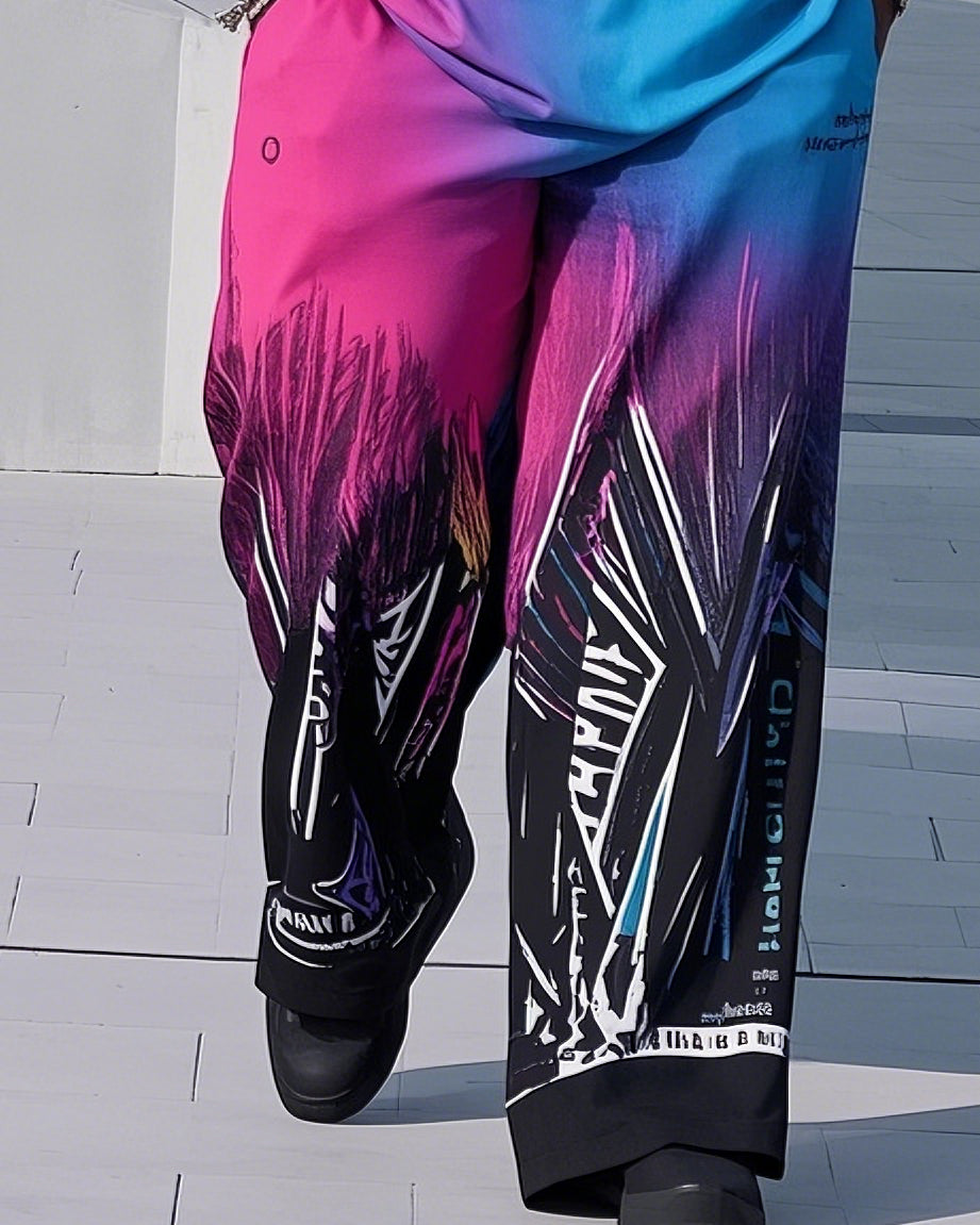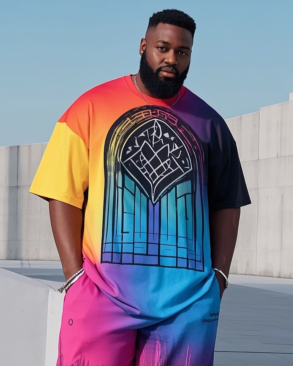 Plus Size 1 L-9L Men's Gradient Episcopal Church Print Casual Short-sleeved T-shirt Pants Suit