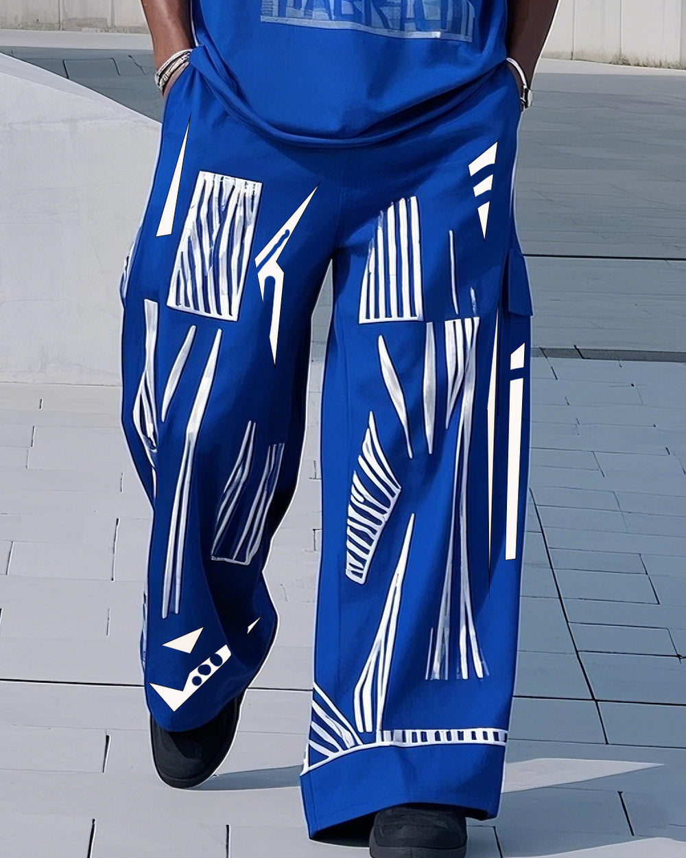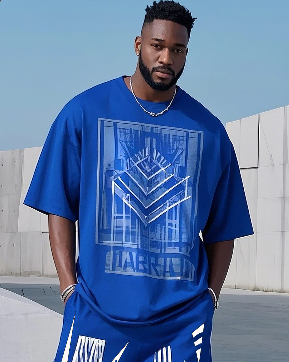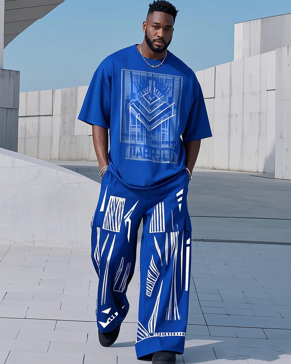 Plus Size 1 L-9L Men's Klein Blue Fashion Printed Casual Short Sleeve T-Shirt Pants Suit