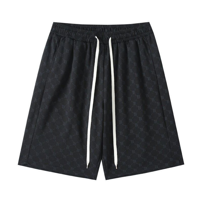 These men's big and tall casual shorts are available in black and brown. They feature an artistic letter "B" print, forming a plaid design. The elastic waistband and adjustable drawstring ensure a comfortable fit. They're versatile and easy to pair with many tops, from casual tees to stylish button-ups.