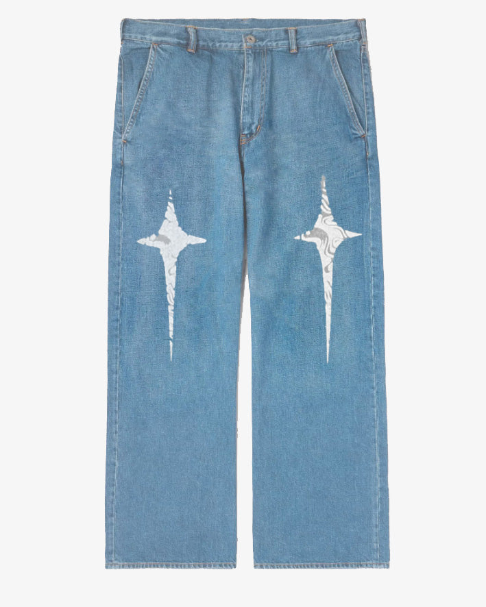 Plus Size Boys 2025 Fashion Street Cross Star Print Jeans