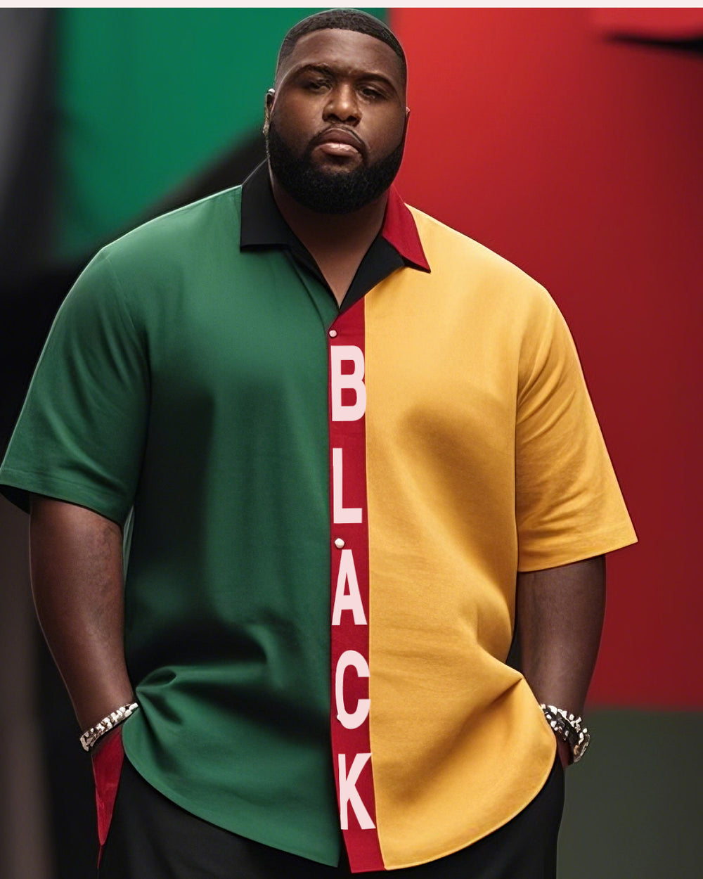Plus Size Boys June Day Free Day Black Green Yellow Stitching Short Sleeve Shirt Shorts Suit