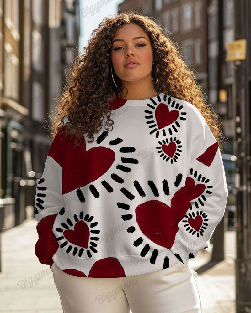 Plus Size Colorblock Heart Print Casual Long Sleeve Sweatshirt