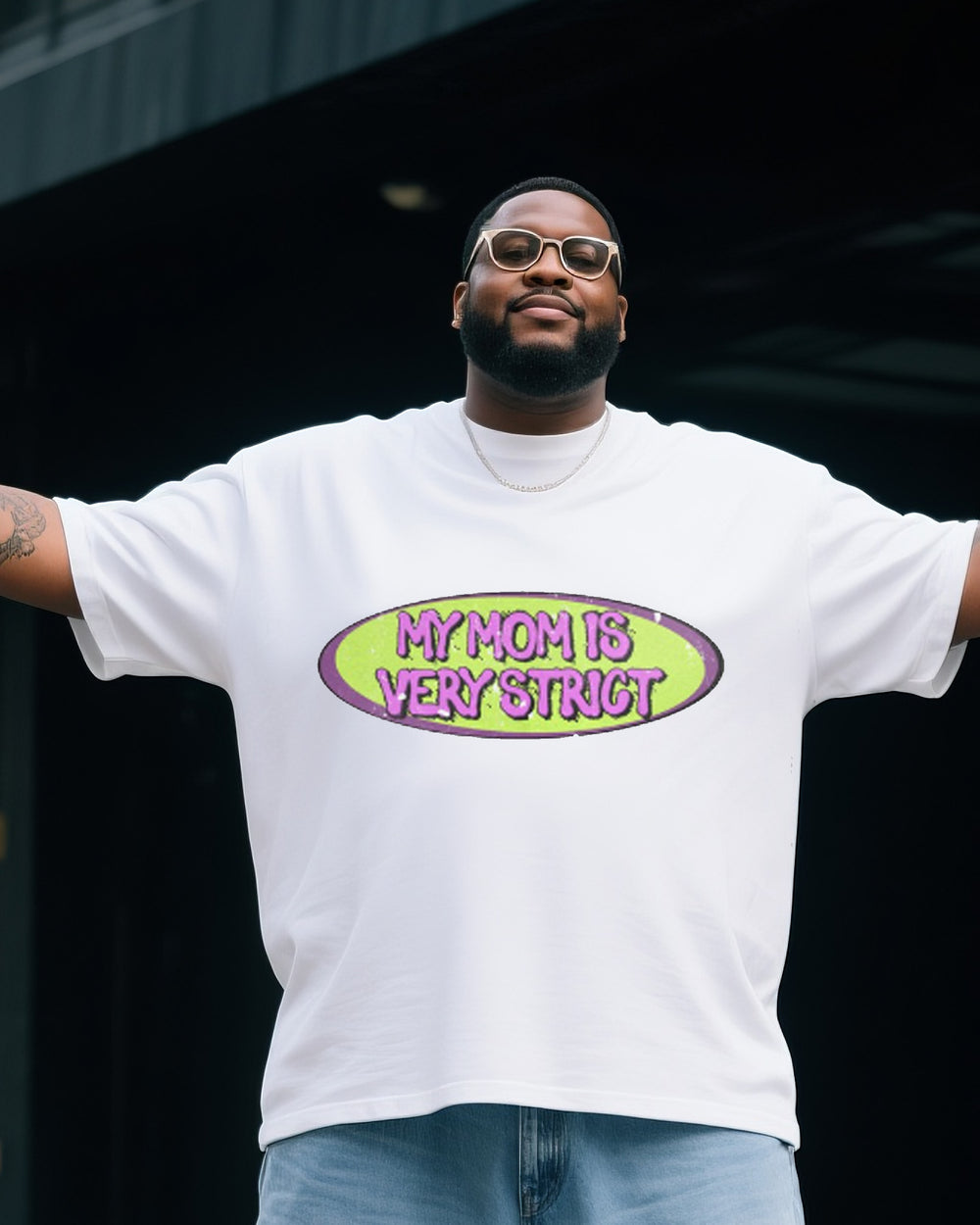 Plus Size Men My Mother Is Very Strict Creative Printed T-shirt Denim Pants Suit