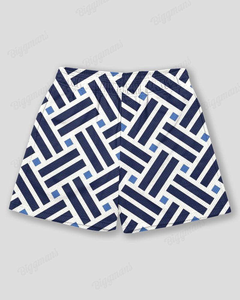 Plus Size Men's Blue Stripe Geometric Print Sports Mesh Quick Dry Shorts
